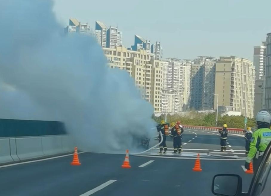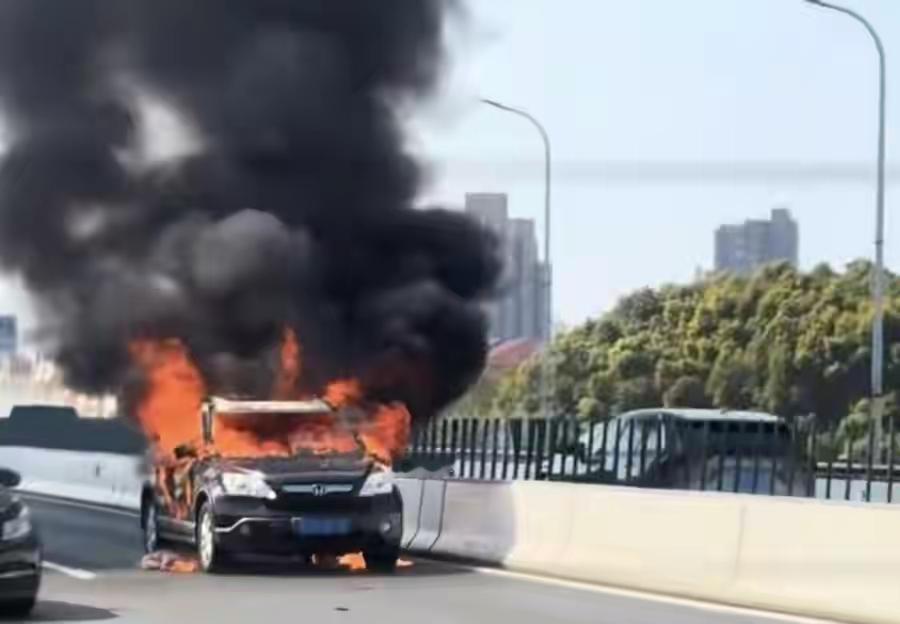 大年初一,沪闵高架一车辆起火燃烧,无人员伤亡,原因待查。今天(2月17日),有网