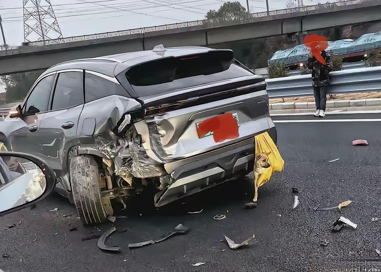 高速车祸,狗生太刺激了。应该是后车是看躲闪不及,方向盘往左打了一下