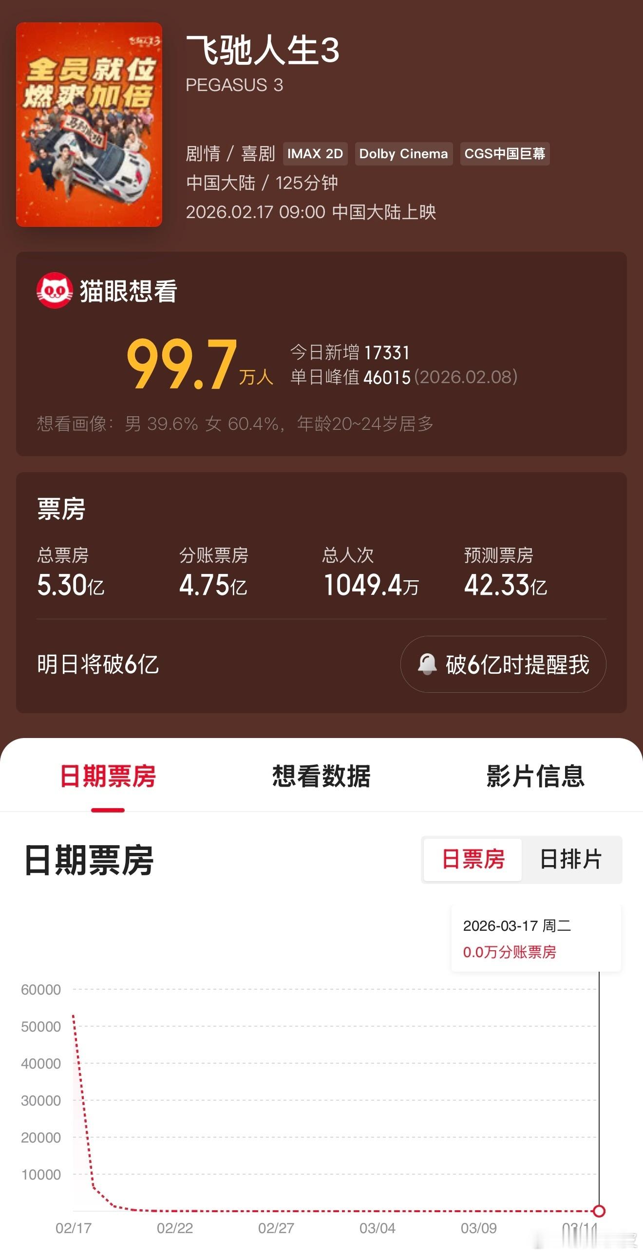 飞驰人生3票房大年初一《飞驰人生3》首日票房破5亿,这票房杠杠的。这真要成新春黑