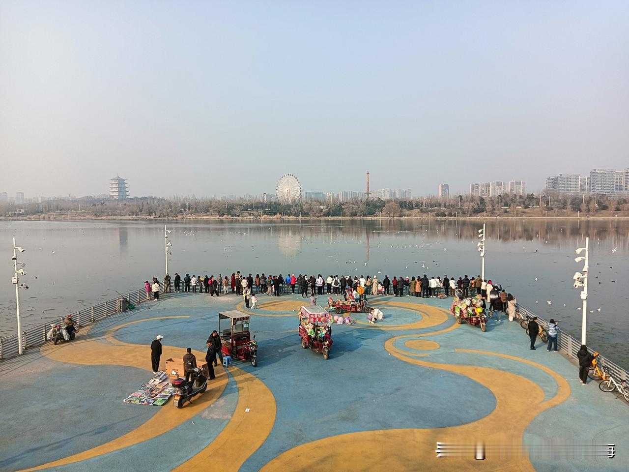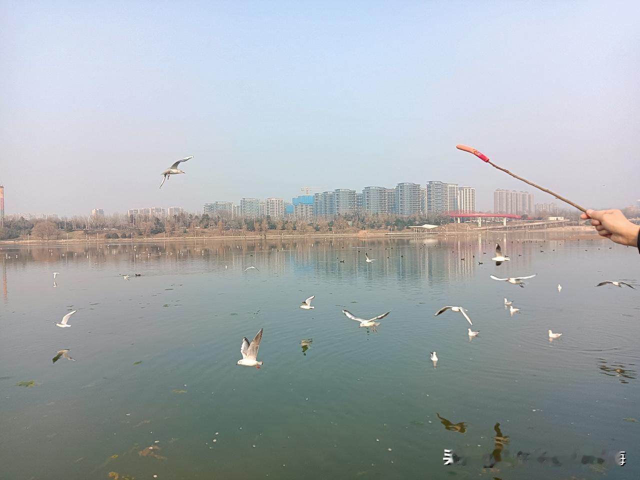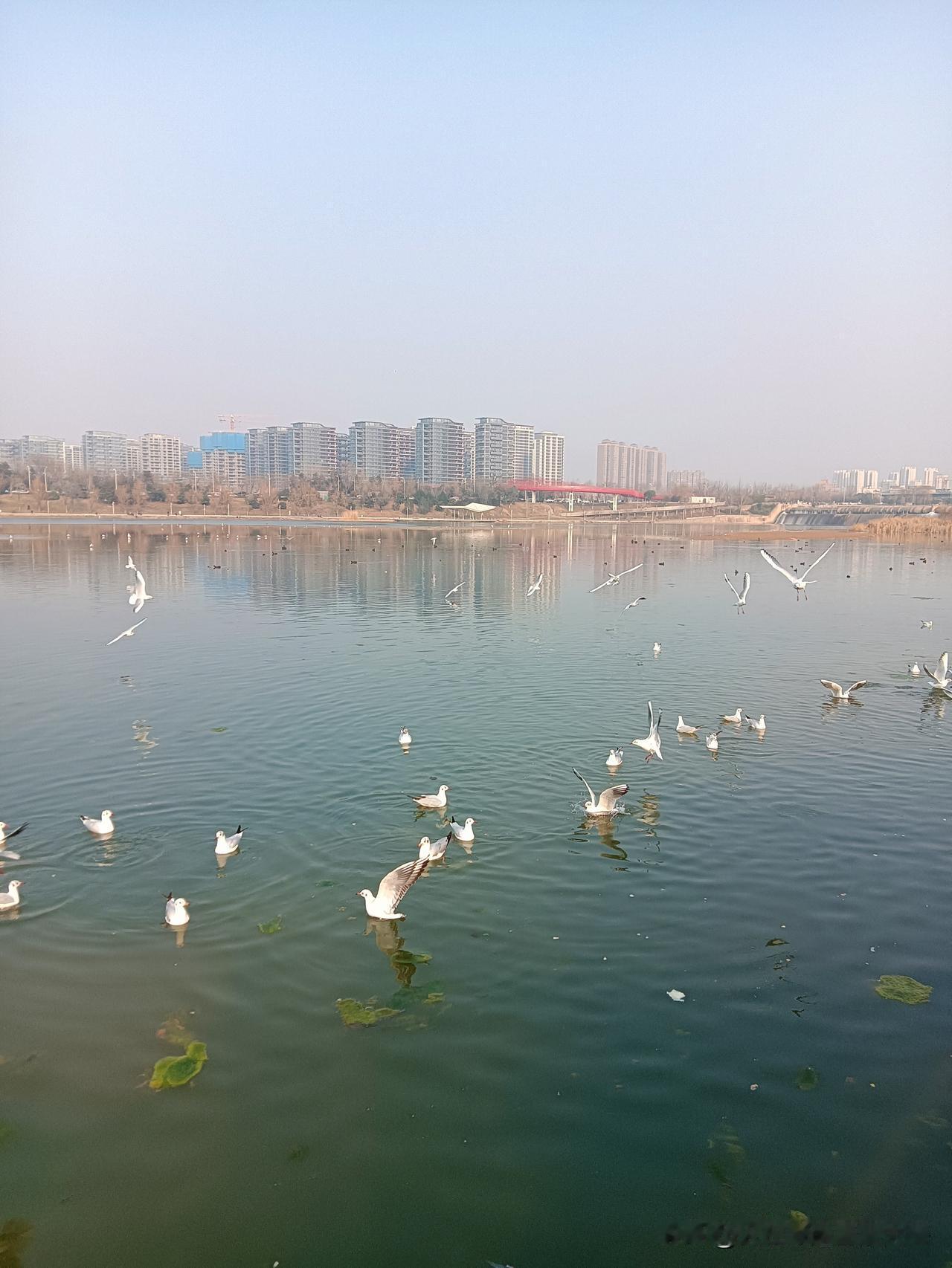 手机每天随手拍大年初一中午吃过饺子,我就坐上地铁来到灞河边游荡。从浐灞商务中心站出来沿着灞河西路朝东走,一路上随处可见都是来户外消遣的“族群”!最近我老听说灞河上有“海鸥”,让我很惊讶,也充满了猎奇心就是一直没顾上去看,趁着春节假日去“一饱眼福”!站在人潮拥挤的河边观景台我真的看见了羽毛纯白的海鸥,这种多生活在滨海城市的飞鸟居然落脚“迁徙”在了北方内陆河道刷新了我的认知拓宽了我的眼界!前来观鸟的人很多,有人还买来摊点上的烤肠、面包、馍片想方设法逗引海鸥“掠食”!灞河风景 美景浐灞 灞河旅游 灞河岸边 西安灞河流域 西安浐灞风光