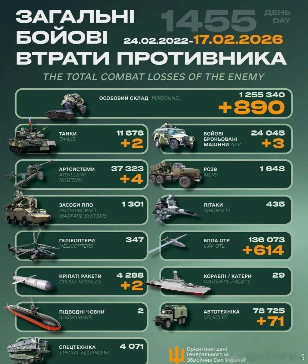 乌俄战争进入第1455天,乌克兰总参谋部发布战报:过去24小时乌俄双方交战141次,其中19次在胡利亚伊波列(27次在苏梅)、19次在托列茨克、12次在莱曼、59次在波克罗夫斯克、5次在南顿涅茨克区域。毙伤俄890名。俄军累计损失1255340人。摧毁俄2辆坦克、3辆装甲车、4门火炮、614架大型无人机、72辆军车、2枚导弹。