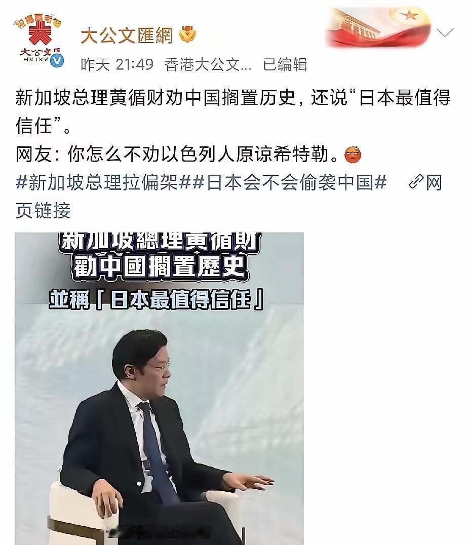 新加坡联合早报2月15日(新加坡沦陷日)报道:“新加坡总理兼财政部长黄循财指出,1942年2月15日新加坡沦陷的历史留下了沉重且深刻的教训,如今全面防卫日提醒新加坡人必须掌握自己的命运,捍卫国家,为世世代代维护一个安全稳固的新加坡。” 新加坡被日本侵略、占领、殖民、屠杀不敢说,黄循财把它简单说成是“沦陷”,是“教训”;新加坡明明说的就是要防卫的就是日本的再次侵略,他不敢直说,只好说成是“全面防卫”,并在其他场合说新加坡已经和日本“达成了和解”,但怎么达成的和解和什么样的和解,他没说。 就是这个好像还没忘记新加坡“沦陷的历史”的新加坡总理黄循财却在去年11月份劝中国搁置(日本侵略中国并犯下滔天罪行的)历史。我们不禁要问:你,以及小小的新加坡有劝中国搁置历史的资格吗?你,以及新加坡配吗? 坦率说,对于世界上任何一场冲突或者战争,加入任何一方都不会起到任何作用的新加坡来说,黄循财可能是被迫、无意或不情愿说的“沦陷的历史留下了沉重且深刻的教训”这句话是对的,如果新加坡人想“掌握自己的命运”,首先要做的就是管好自己喜欢对比自己强大得多的国家说三道四的嘴巴,尤其是对中国不要信口雌黄。