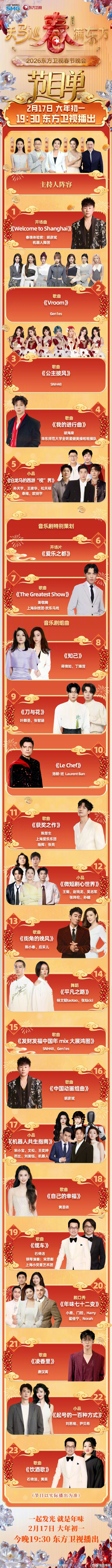 #江苏卫视春晚# :《把你的名字念一万遍》《新365个祝福》《双人舞》苏超球员代表《以梦为马》 《刀马旦》等;