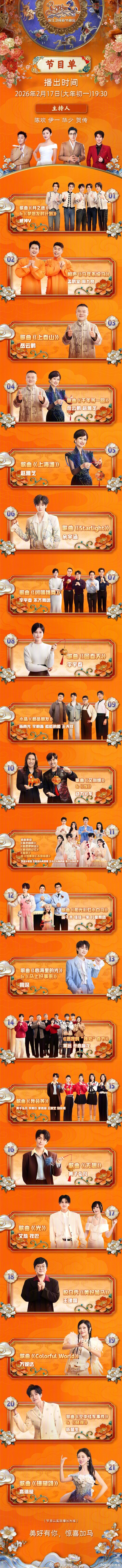 #北京台春晚# 《岁岁年年》、《时间啊》、《该相逢的人会相逢》、《心意的佐证》、《登顶》、《春风得意马蹄吉》等; #北京台春晚节目单#