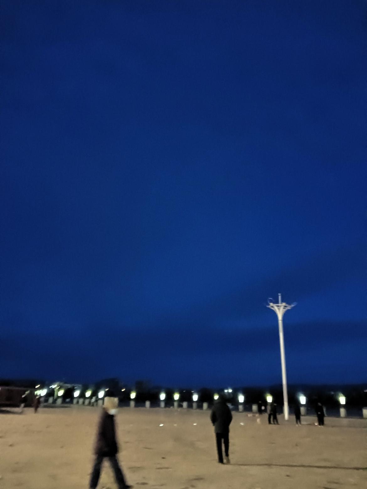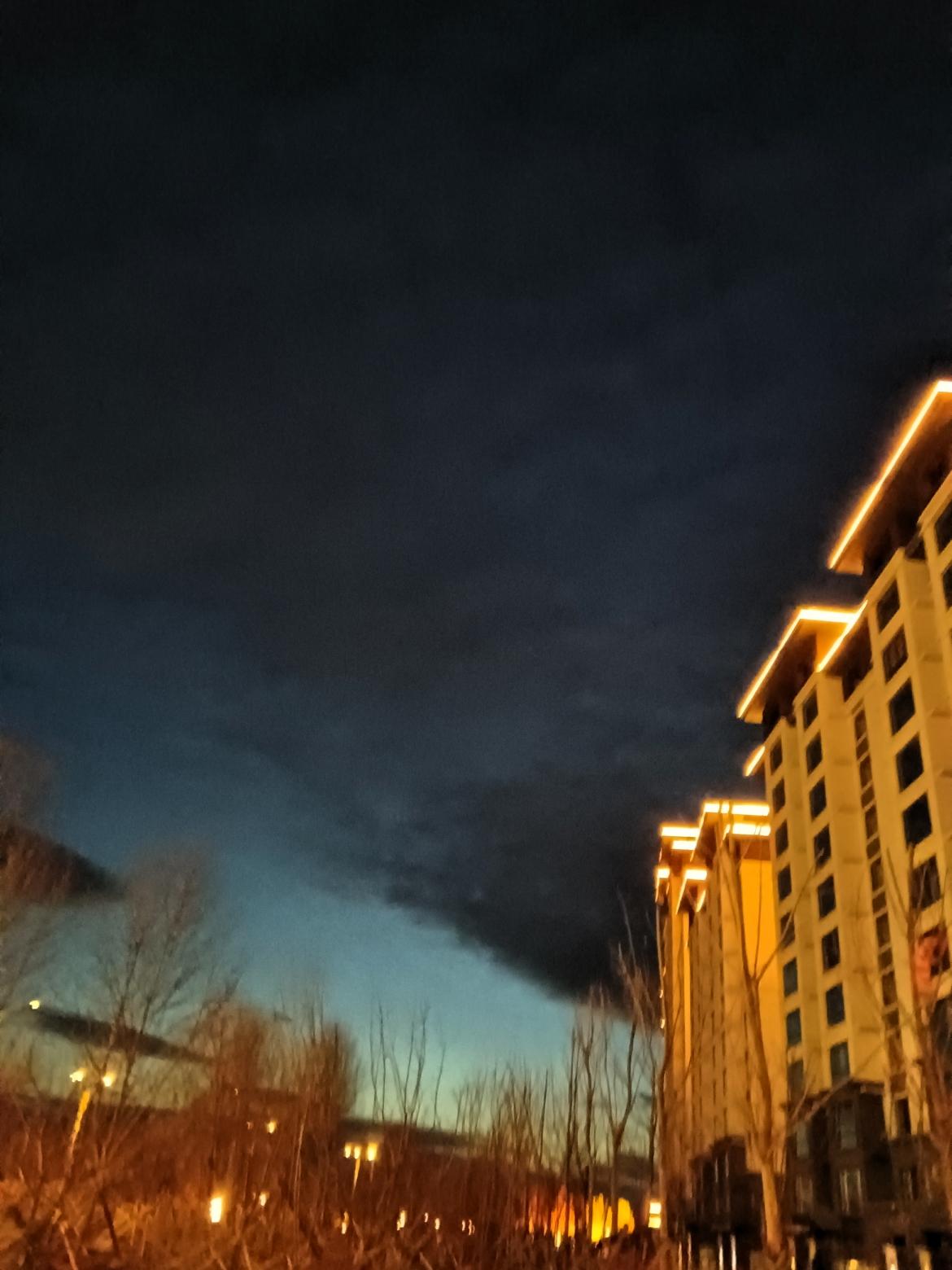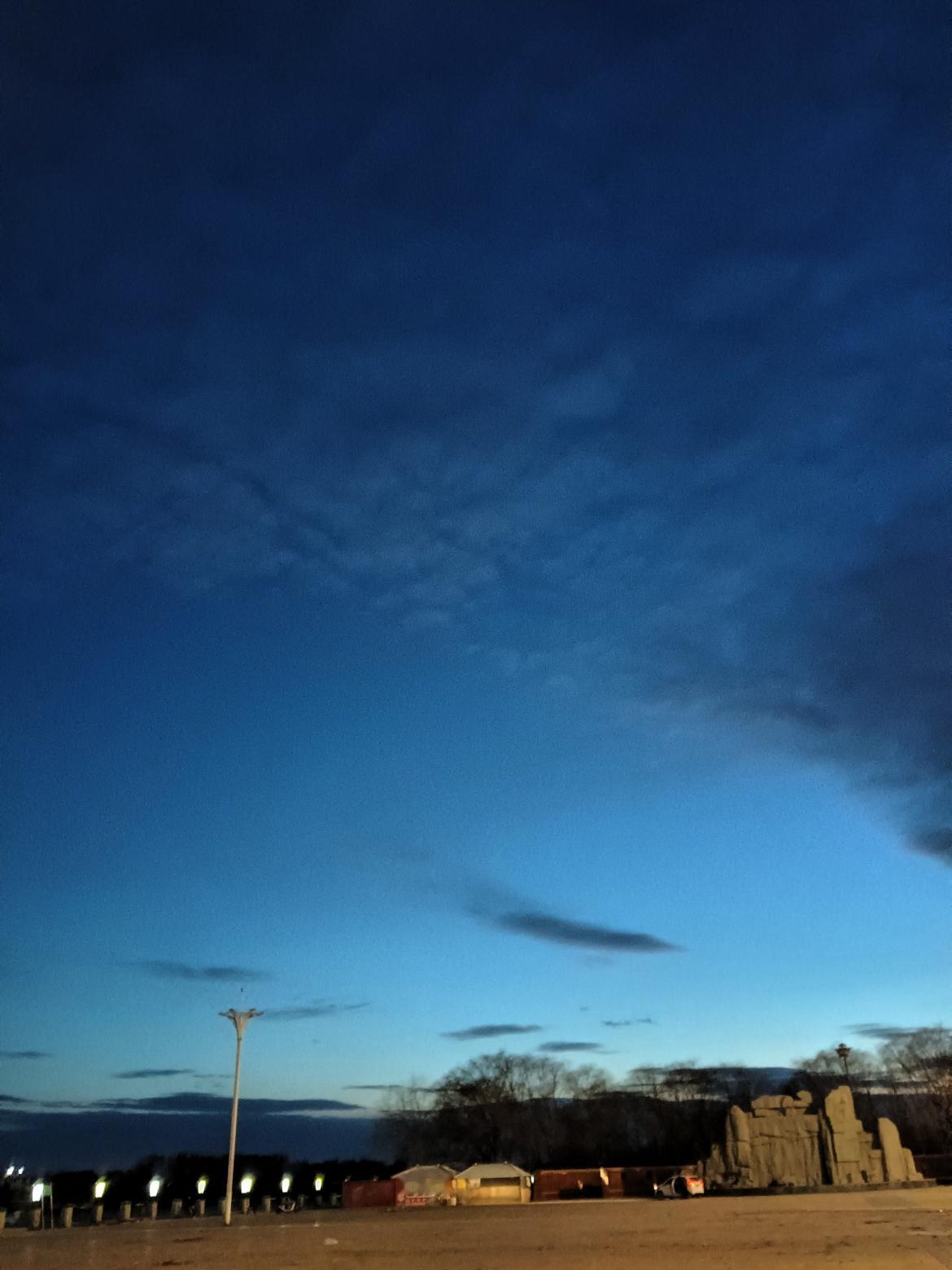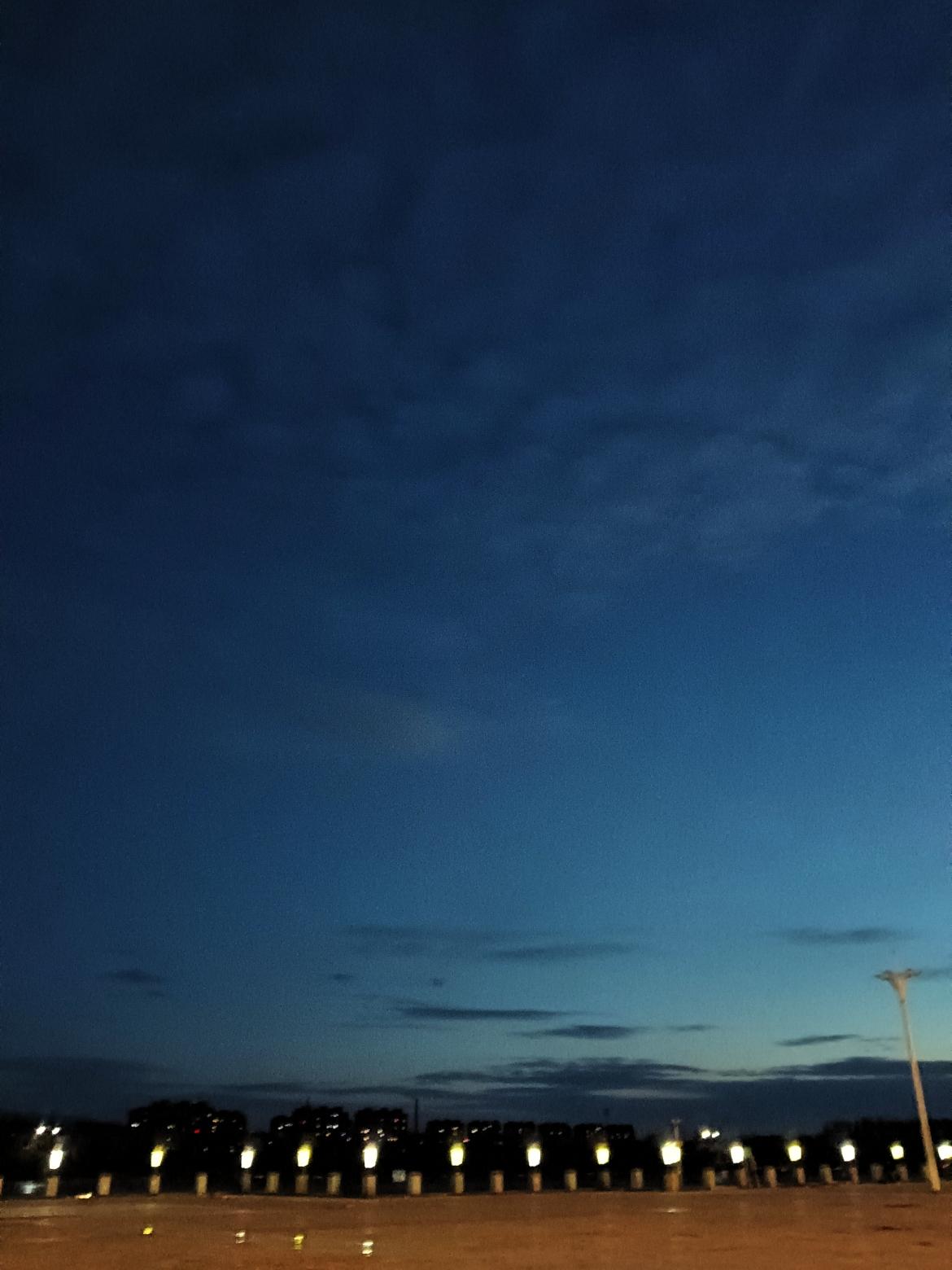 月色如水,灯影阑珊。傍晚在公园散步,仰望天空真的好蓝啊!
