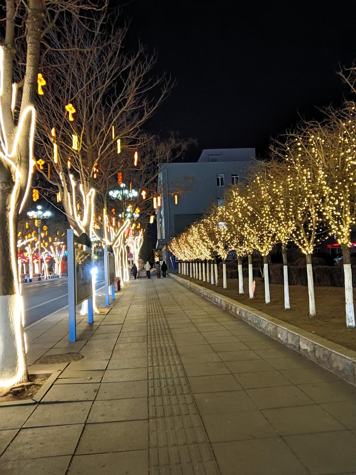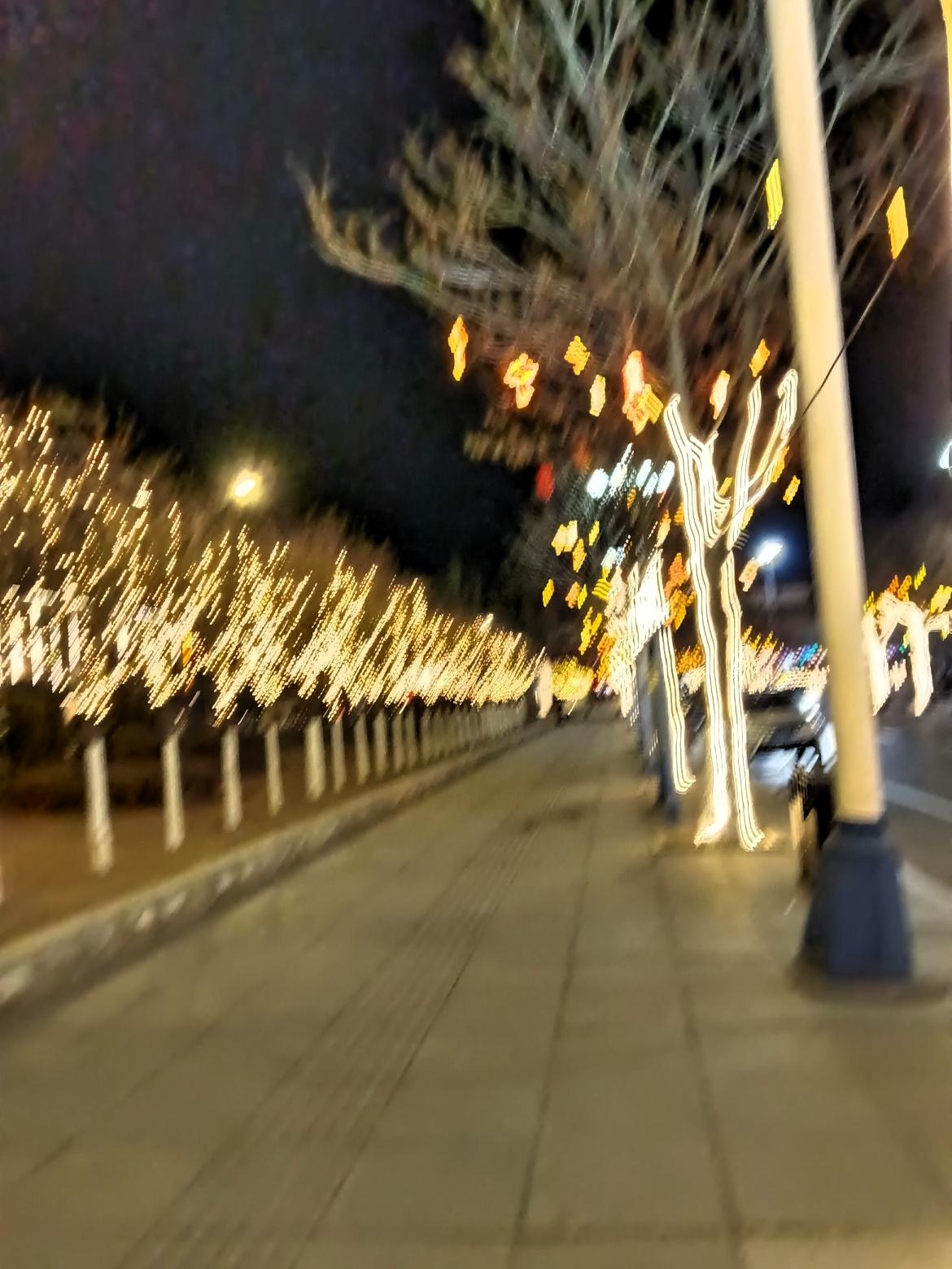 夜晚的街道,灯火辉煌,树影婆娑,美不胜收!🌃✨