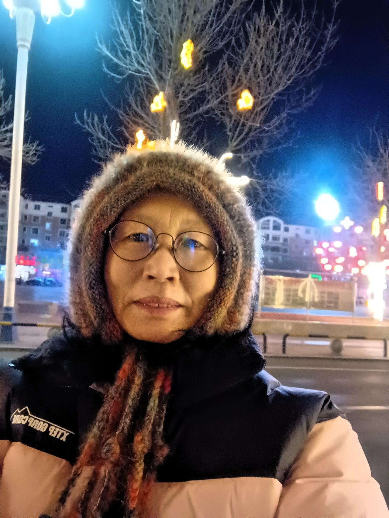 初一晚上上广场散步,广场上彩灯闪烁,好美呀!给自己拍几张留个纪念吧!小区过年夜景