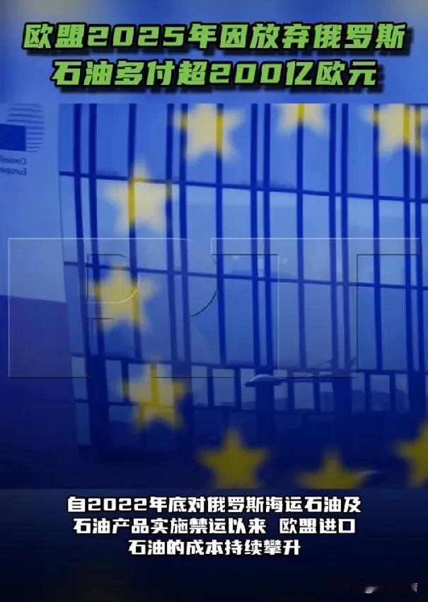 俄媒:欧盟对俄石油制裁使其2025年多支出200多亿欧元,累计多支付超2800亿欧元。 2月17日,据俄新社报道,欧盟统计局的数据显示,2025年欧盟因放弃进口俄罗斯石油,额外支出超过200亿欧元。    自2022年底对俄罗斯海运石油及石油产品实施禁运以来,欧盟进口石油的成本持续攀升。其平均采购价从2021年的每桶57.4欧元,涨至2025年的每桶64.3欧元。与此同时,欧盟的石油进口量却在下降——2025年全年进口33亿桶,低于2024年的35亿桶,也低于2021年的34亿桶。但总花费却从制裁前的1938亿欧元增至2123亿欧元。据此计算,欧盟仅2025年一年的超额支出就达227亿欧元。 自制裁开始实施以来,欧盟因制裁俄罗斯石油累计多付的金额已高达2826亿欧元。 俄乌冲突爆发后,欧盟坚定站在乌克兰一方,并对俄罗斯实施多项制裁,特别是在油气资源方面的制裁至今还在加码。据媒体报道,欧盟决定自2026年1月21日起,禁止进口以俄罗斯原油炼制的燃料。2月6日,欧盟委员会主席冯德莱恩又宣布第20轮制裁方案,以“全面海事服务禁令”取代石油价格上限机制,禁止欧盟企业为运输俄原油油轮提供保险、金融和法律服务。 不过,制裁是一把双刃剑,在严重影响俄罗斯经济的同时,也伤及欧盟自身经济。有消息称,自2022年开始制裁以来,欧盟对俄出口暴跌65%,五年内损失超万亿欧元,部分国家工业因能源成本高企丧失竞争力,企业倒闭或外迁,欧洲天然气和电力价格大幅高于美国。 值得注意的是,俄罗斯通过组建“影子舰队”、改变出口方向、放弃美元结算等手段大大减少了西方石油制裁的影响。据媒体报道,俄罗斯原油海运出口量在2026年初创下日均744万桶的两年新高。