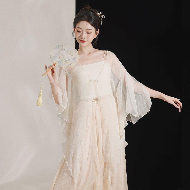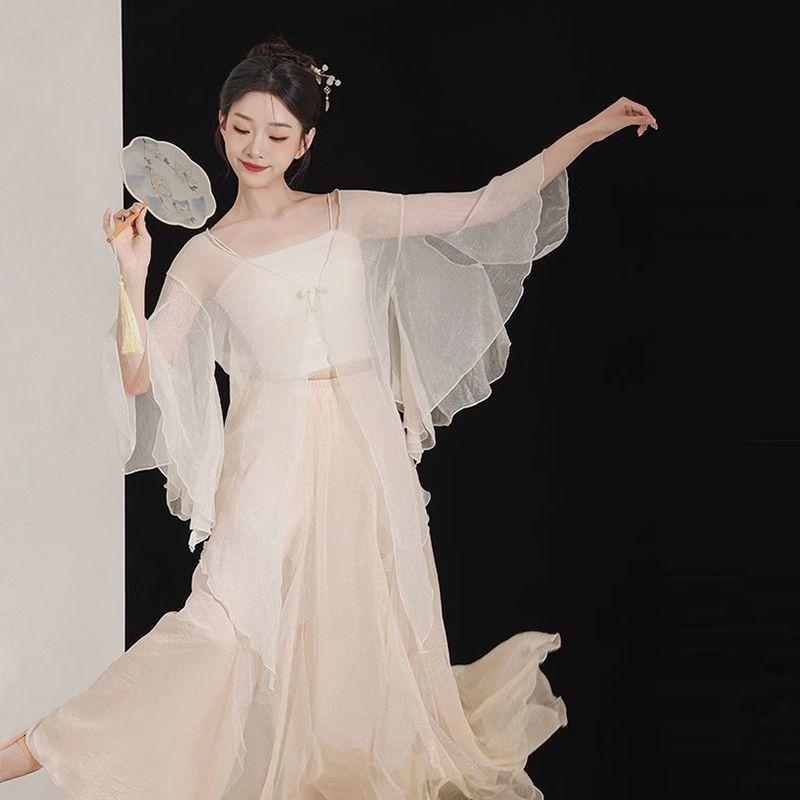 仙气飘飘的汉服少女,轻盈舞动在白色背景前,宛如画中仙子。晒图笔记大赛 中国风仙女汉服