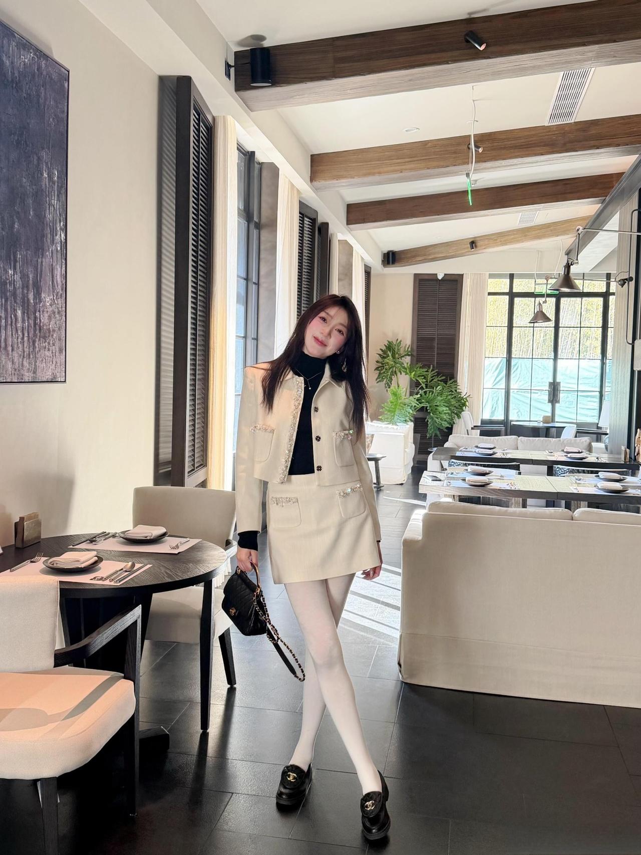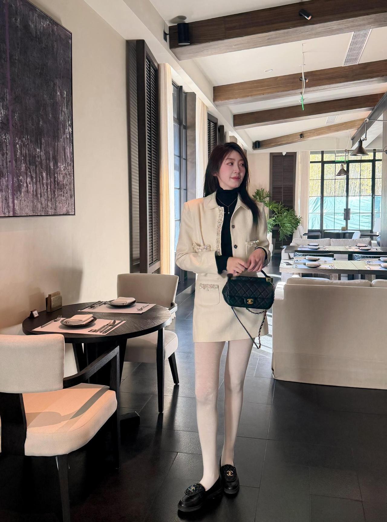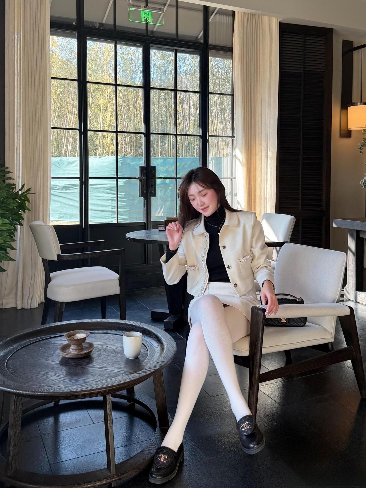 这套穿搭太有“优雅大小姐感”了!米白色小香风套装自带精致贵气,内搭黑高领平衡了甜腻感,黑皮鞋的组合又添了点复古甜酷,整体是精致又不张扬的轻正式风格~高级感穿搭,温柔风穿搭。 短款小香风穿搭