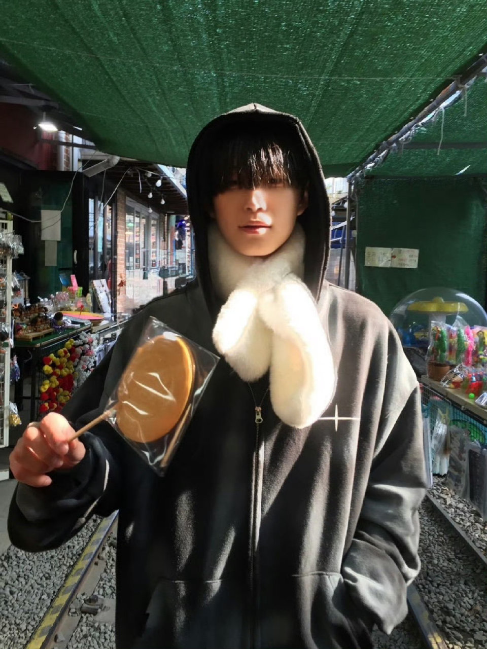 张天爱跟素人合影,胯真的好宽,大宅院似的