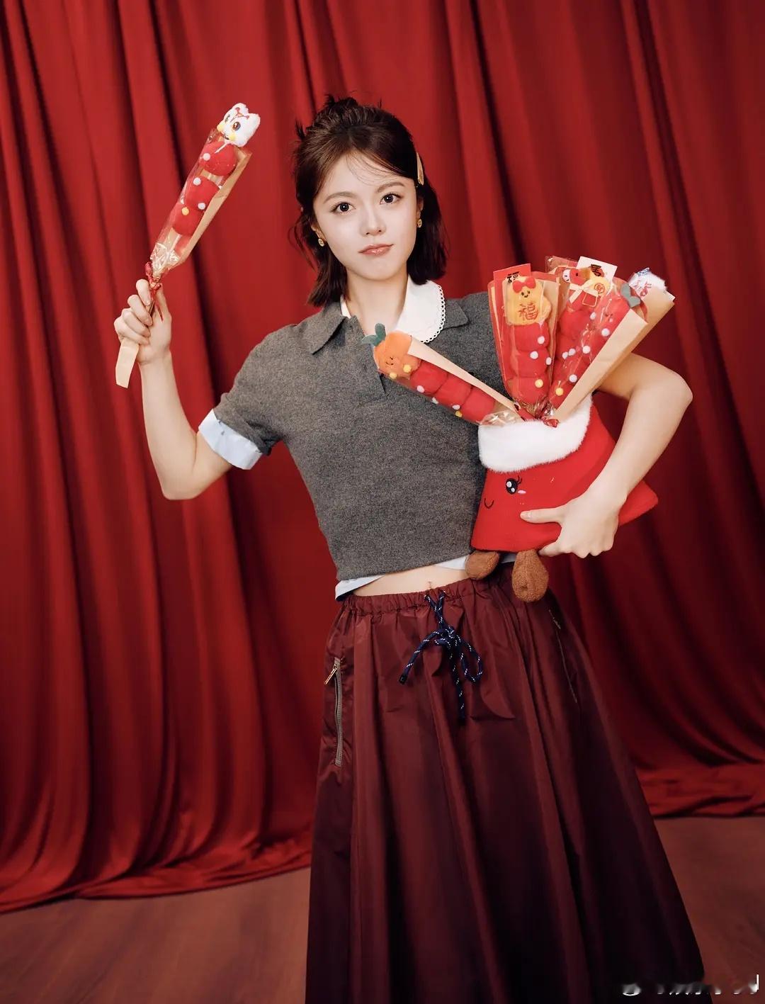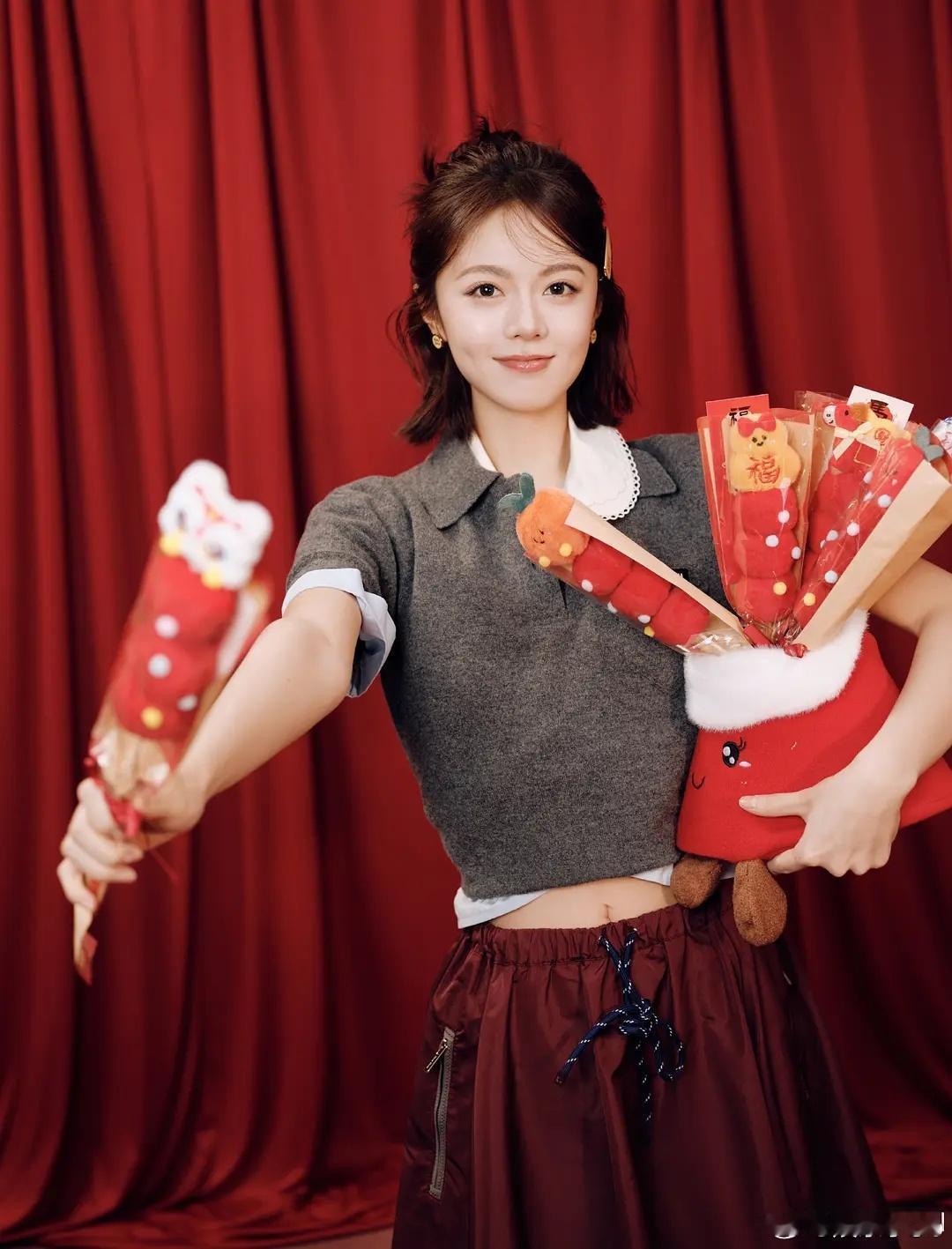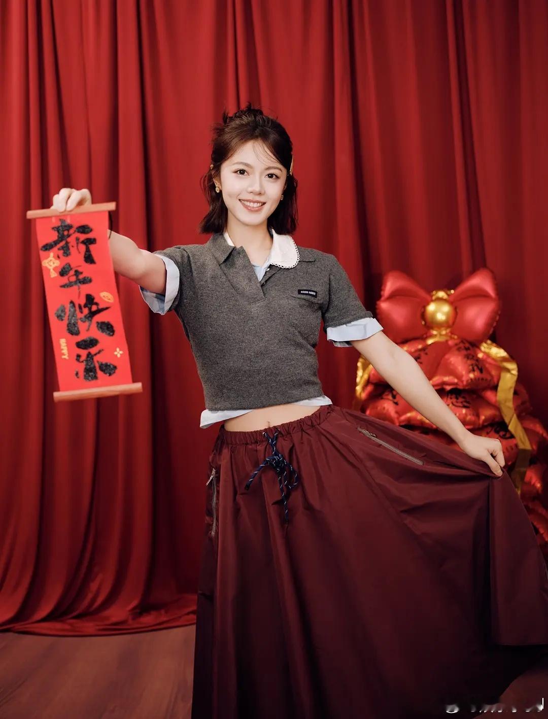 赵今麦新年图,好喜庆的麦麦又get新年拍照姿势