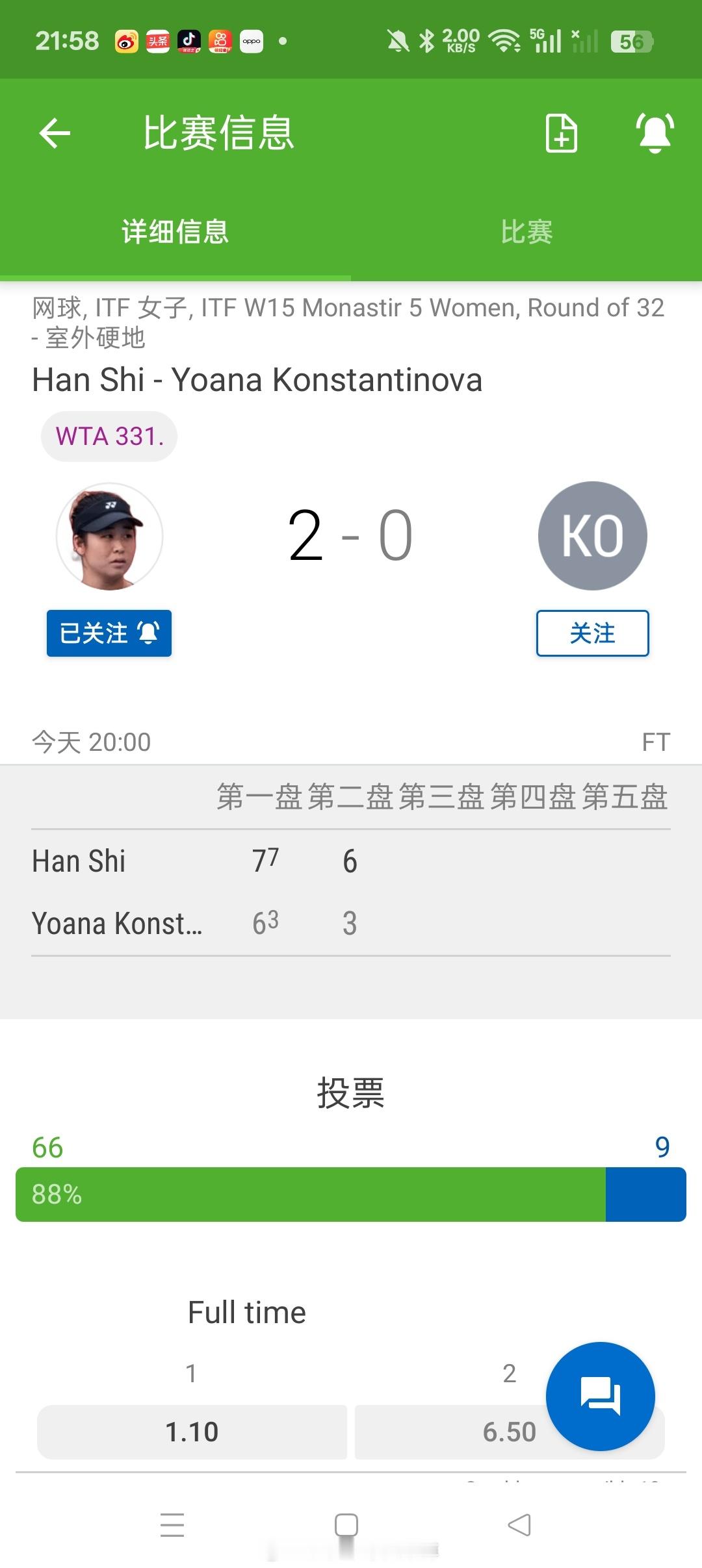小花小草资讯小花小草资讯 【莫纳斯提尔W15】女单正赛签表头号种子🇨🇳施晗7-6(3)6-3击败🇧🇬康斯坦丁诺娃晋级第二轮施晗收获1分