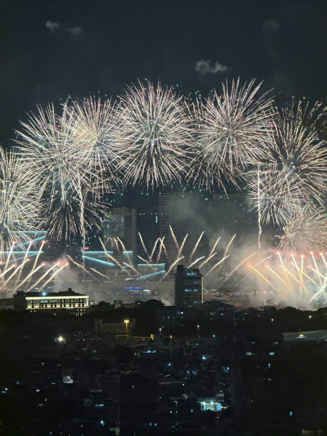 广州每年一次的烟花确实很值得看,都已经是广州过年的一个名片了。