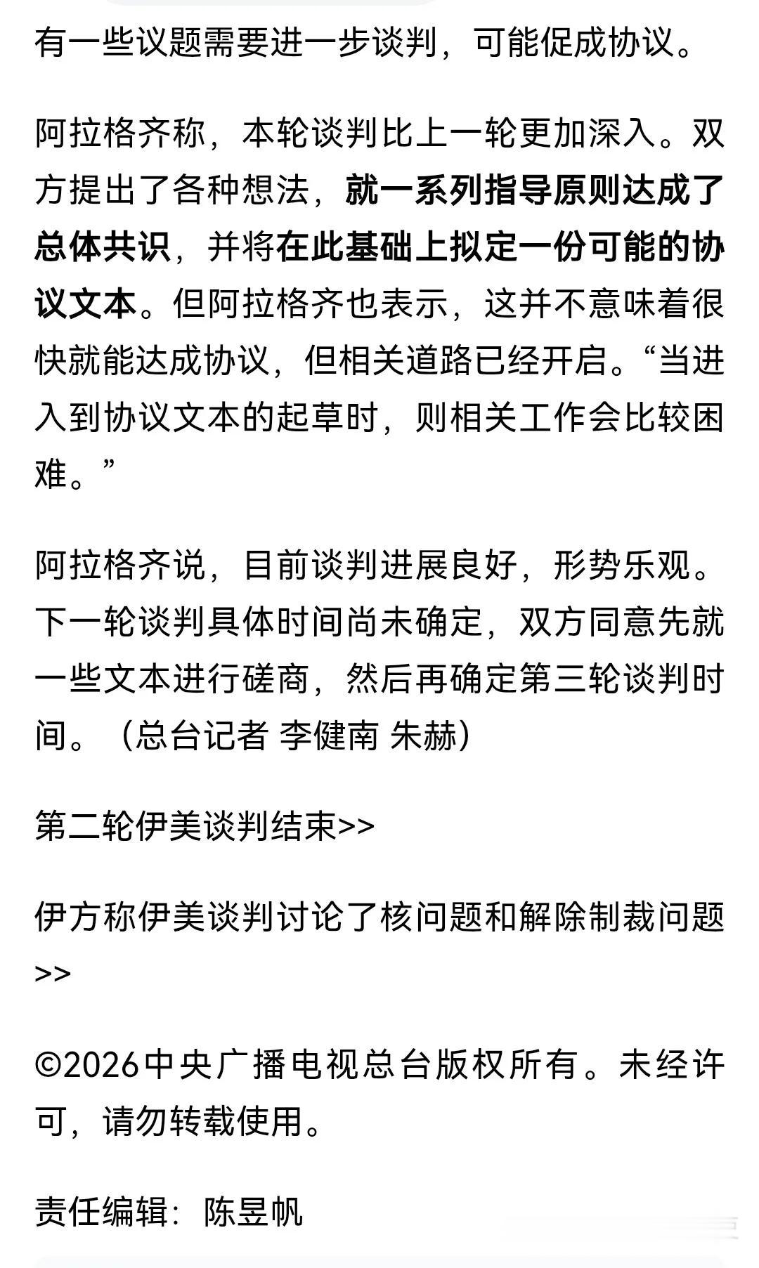 美伊日内瓦谈判刚结束不久。 伊朗外长所谓的,双方就谈判指导原则达成一致。他的潜台词应该是指,接下来还要继续谈。 万一,特朗普认为这只是伊朗的拖延策略而已,双方没有达成任何实际协议,本轮谈判其实是失败告终。 在这样存在明显分歧的情况下,战争岂不是即将来临?!