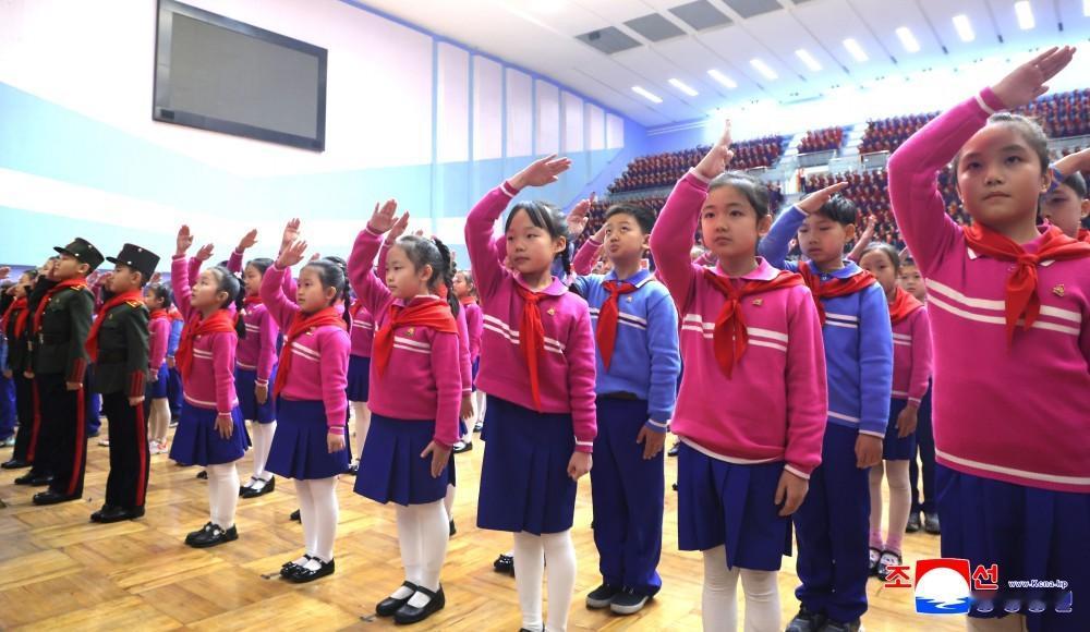 多位发言者向加入朝鲜少年团的学生表示祝贺,并嘱咐他们成长为永葆热烈爱国精神的国家栋梁之才。