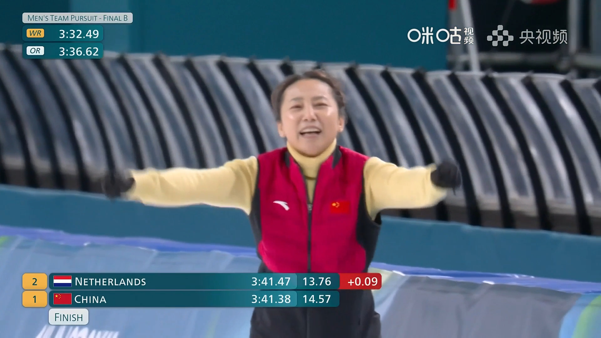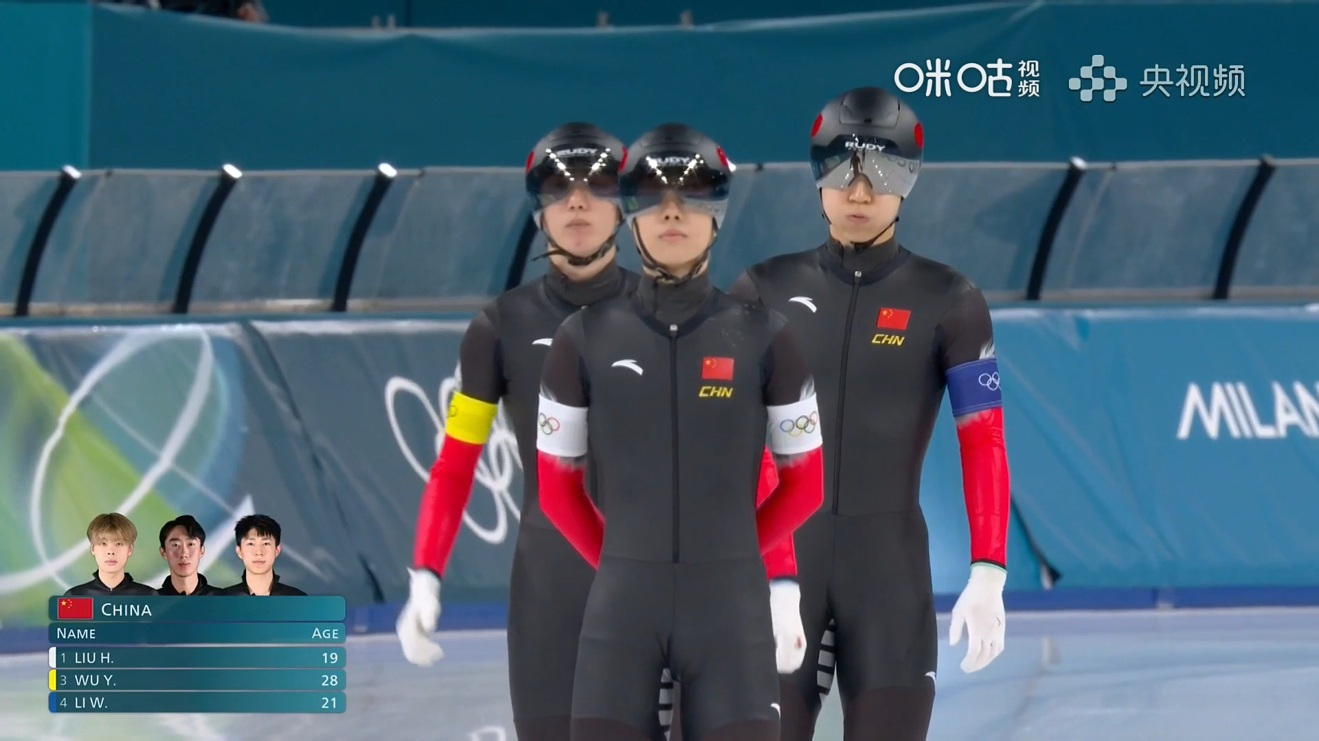 米兰冬奥会速度滑冰男子团体追逐铜牌赛,刘瀚彬、宁忠岩、吴宇联手出战,成绩为3:41.38,以0.09秒的优势获得铜牌,中国男团再次创造历史!