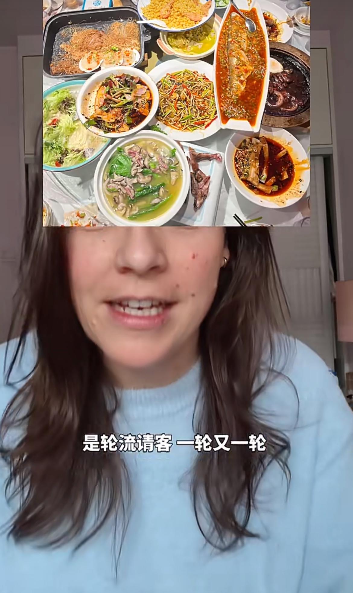 老外被中国人的热情吓到了,西方人在中国过春节太难了,被各种请客聚餐,已经吃了四顿饭了,还被长辈各种投喂,劝酒劝喝饮料,酒桌上太喧闹了导致头很痛 她直言十分感谢中国人的热情,但是实在吃不动了,再吃下去就成胖子了