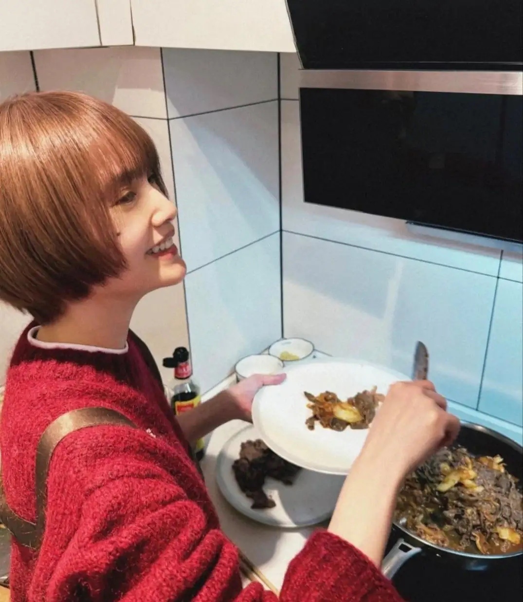 42岁杨丞琳和老公李荣浩在北京家中过新年,夫妻俩装扮时尚,夫妻俩一起下厨包饺子吃汤园,看起来好甜蜜,杨丞琳剪了一头干练的棕色短发,活力满满,外表好年轻,少女感十足。