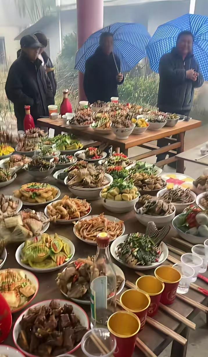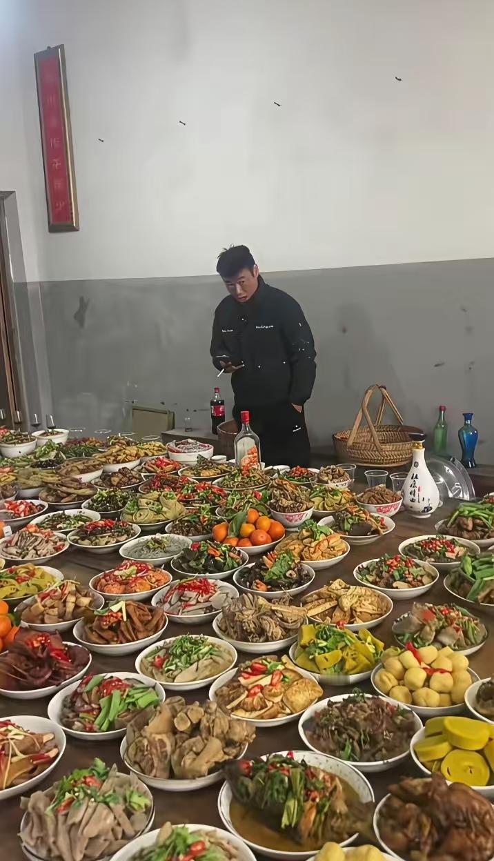 这是我见过最丰盛的年夜饭。这像包工头煮给工人吃的年夜饭,人多菜多。 看着就喜庆,我都想掏钱入伙吃一顿,这个应该是宗族之间在祠堂里一起吃饭。 这么多菜桌面又不能转,能夹住想吃的菜吗?做完最后一道菜,绝大部分菜都凉透了。 能发表这个评论,说明你没有一个大家族的庇护,不明白啥叫团结的家族。