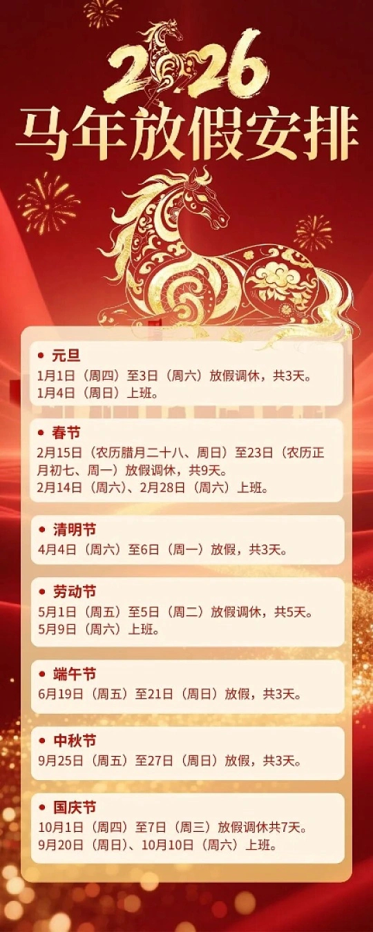 今年所有法定假日全与周末重合2026年也太会了!全年法定假日全和周末锁死,堪称年度最懂打工人的神仙巧合。不用硬凑、不用拉扯,放假就是顺顺当当连休,少了调休的折腾,多了休息的踏实,假期氛围感直接拉满,这才是放假该有的样子!