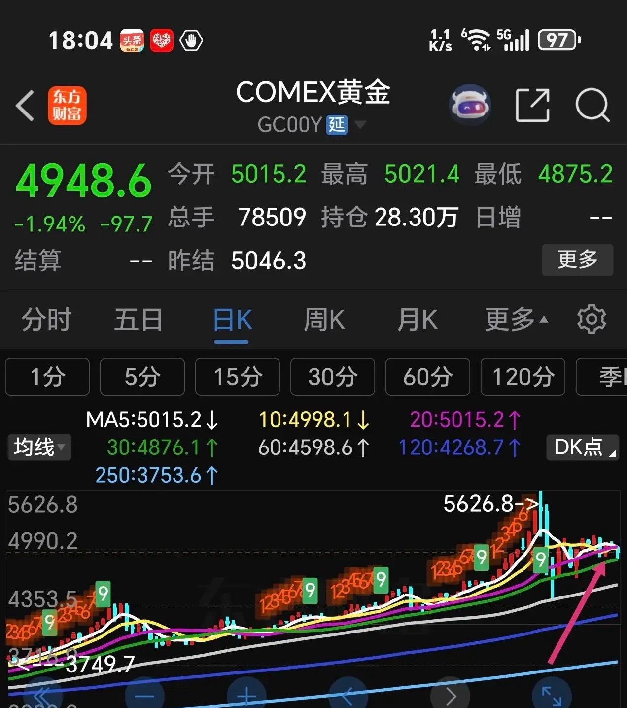 大年初一,国际黄金目前下跌超2%,盘中一度大跌3%,正好回踩了30日线支撑,从前面走势来看,30日线支撑力度比较强,应该能守住。黄金目前是大跌后的回撤整理,已经整理了12 天了。 中东局势紧张的不确定性,中国休假不参与交易,流动性与活跃度都比较低,导致波动比较大。只要A股开市前一天不大跌,节后影响不会太大。节前押注黄金的板块的,还不比担心。金价银价直线跳水