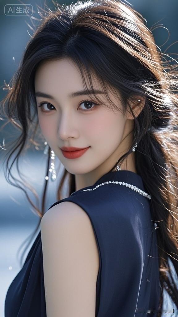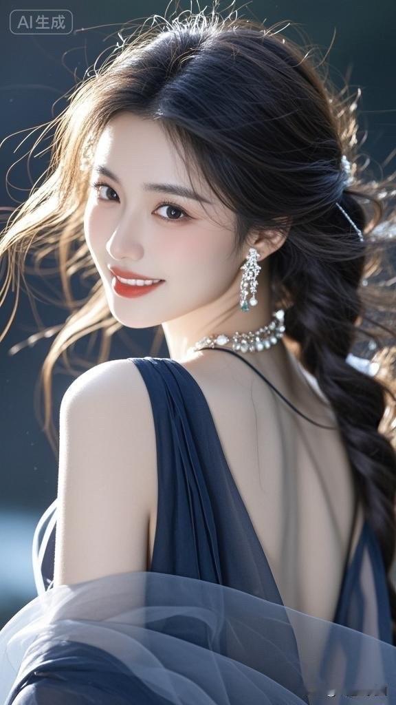 梦幻蓝裙少女,优雅气质满满