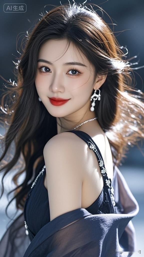 优雅红唇,闪耀耳环,黑衣美人,气质满分!💄✨👗