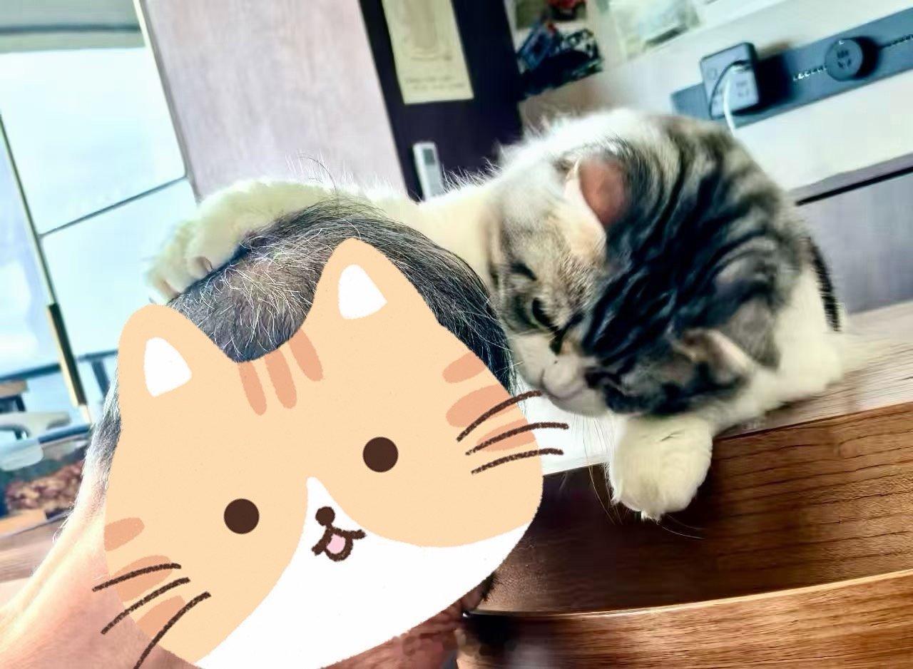 我们出门旅行,老袁接替铲屎官,我家猫好会哄人呢,老袁说,比凑孙舒服多了冒个泡