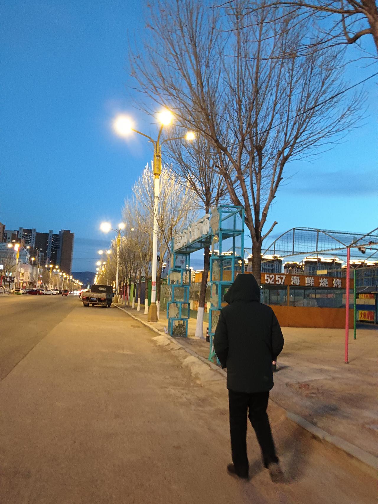 黄昏时分,漫步在城市的街头,灯火阑珊,车流不息。