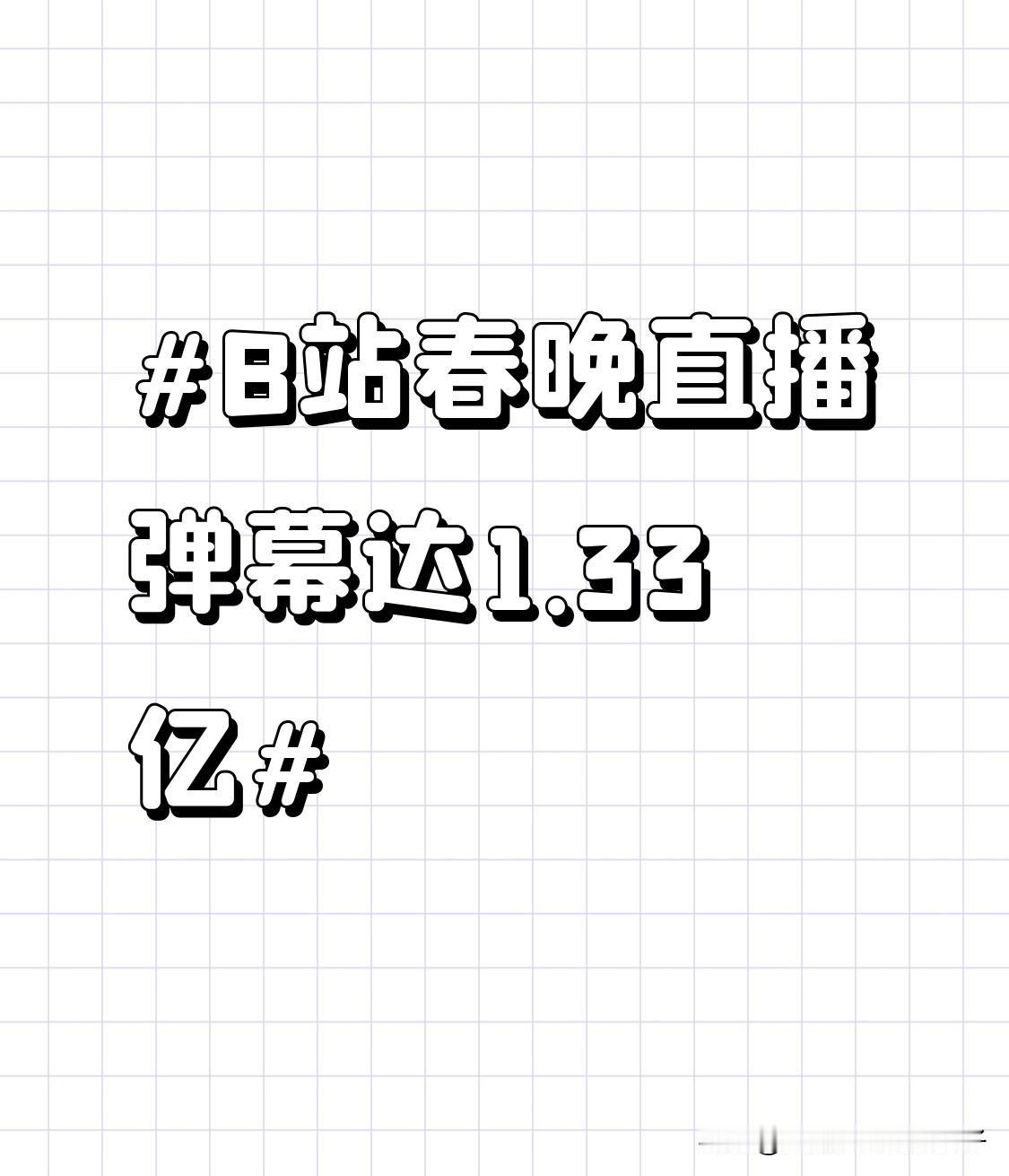 B站春晚直播弹幕达1.33亿 B站春晚直播弹幕达1.33亿,这数据简直太惊人了!这说明大家看晚会时都超爱发弹幕互动。想想那满屏滚动的弹幕,就跟放烟花似的热闹。 我看B站晚会时也会发弹幕,看到精彩节目就忍不住发个“牛啊”“太绝了”。好多人在弹幕里交流看法、玩梗,感觉就像和一群朋友一起看晚会。像那种经典节目一出来,弹幕瞬间就炸锅了,各种回忆杀的话语不断。这1.33亿弹幕,就是大家对这场晚会满满的热情和喜爱啊!