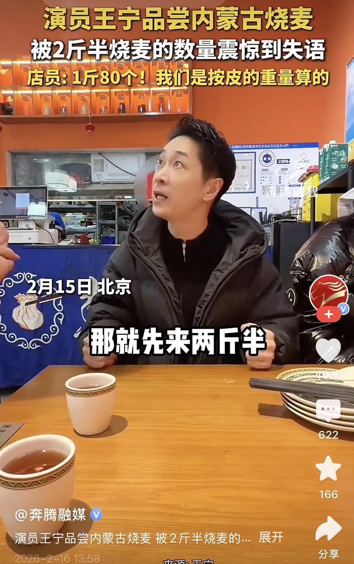这还真是大姑娘坐花轿头一次听说 真到看了演员王宁看见2斤5两麦烧,做成成品,整整装满12个蒸笼端上桌,看王宁那满脸惊悚的表情,真是大吃一惊。 在我们四川,去下馆子说二两牛肉面,也就是二两干面煮熟的量,去吃抄手说来2两抄手:一般只有12,14个、这个量不知如何算的。 内蒙古麦烧2斤5两皮包上馅200个,足够20个人吃饱 这就是各地风土人情的趣味。 象云南买什么都以公斤计价,我2018年去昆明住了一段时间,总觉得公斤计价,不象四川单斤计价更好砍价。 看看王宁这表情太搞笑