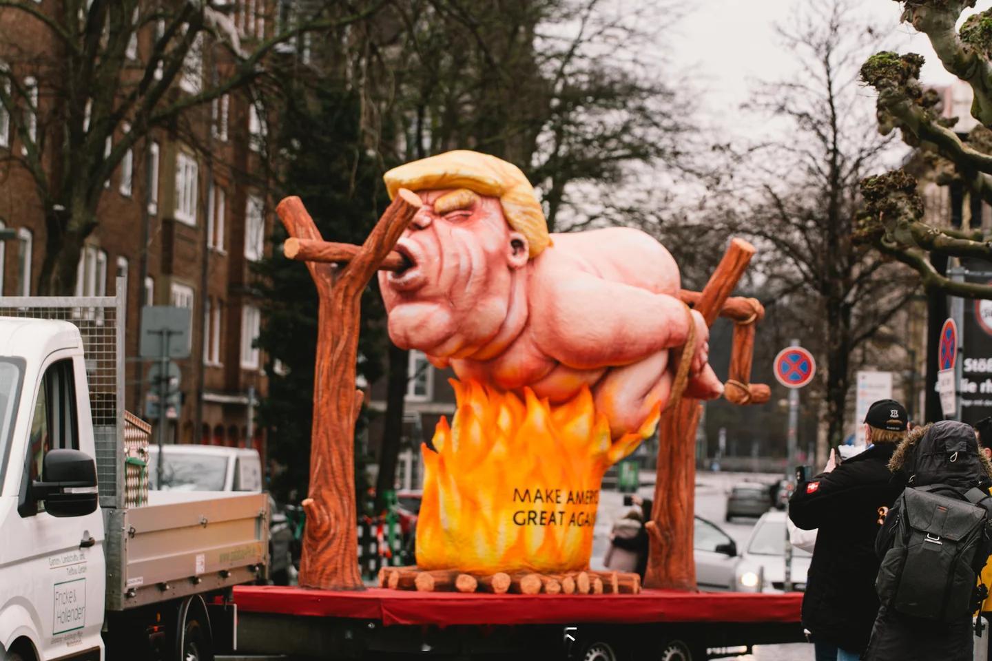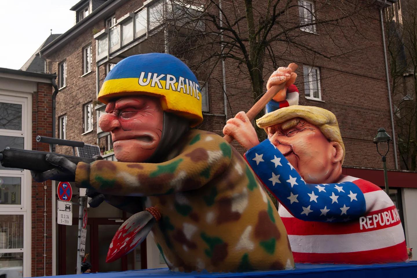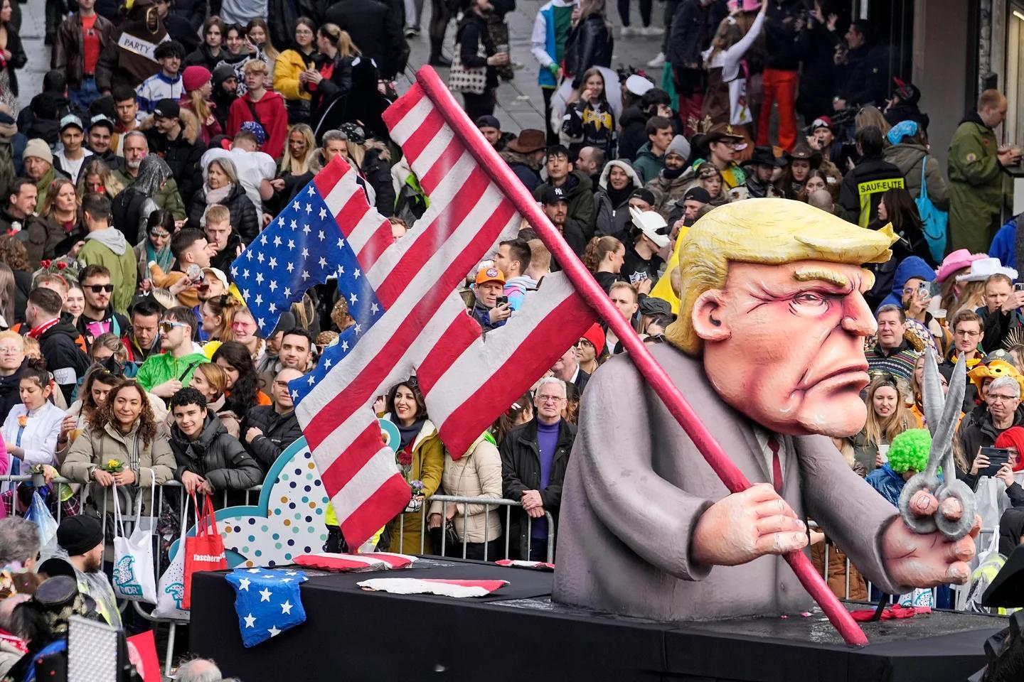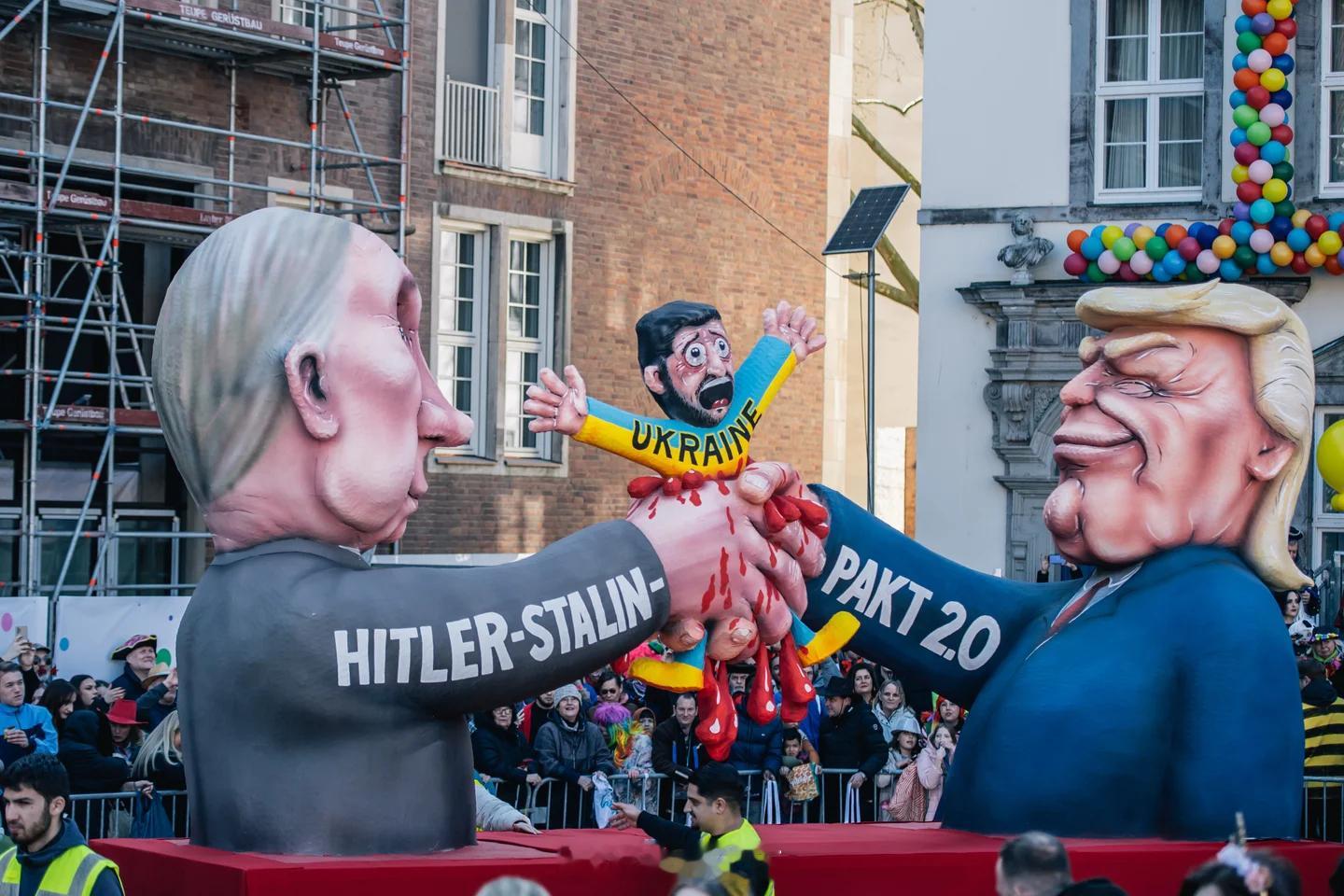 今年和过去几年的杜塞尔多夫狂欢节花车造型留影。网图