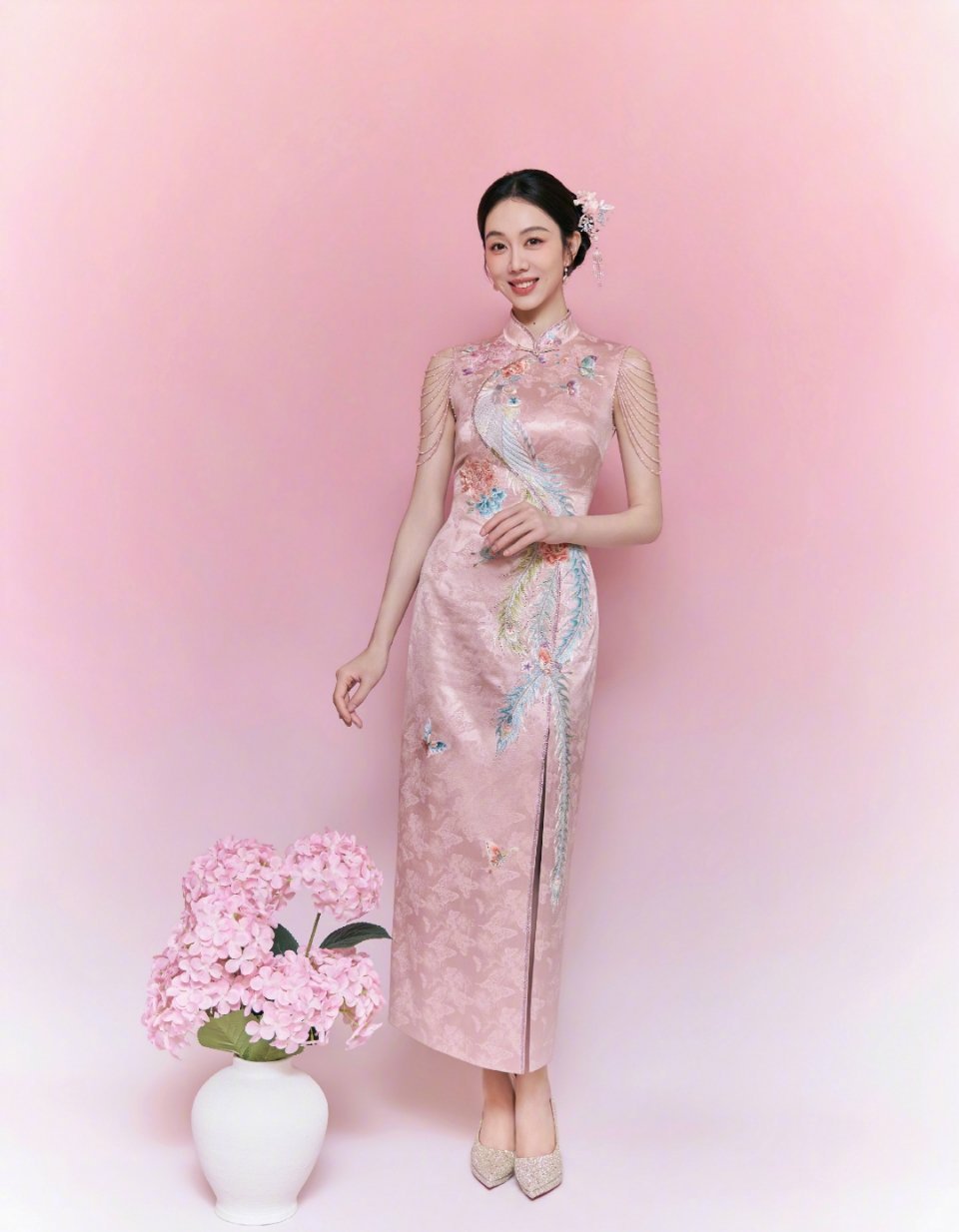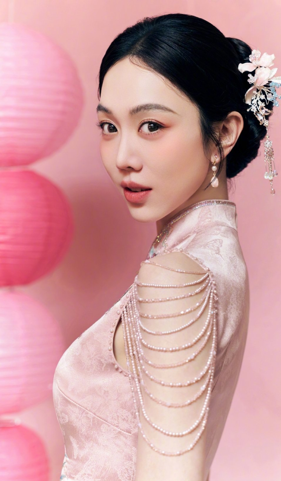 春晚同台10个女星,镜头怼脸,姜妍竟成了最大赢家。那件粉色旗袍,别人穿可能