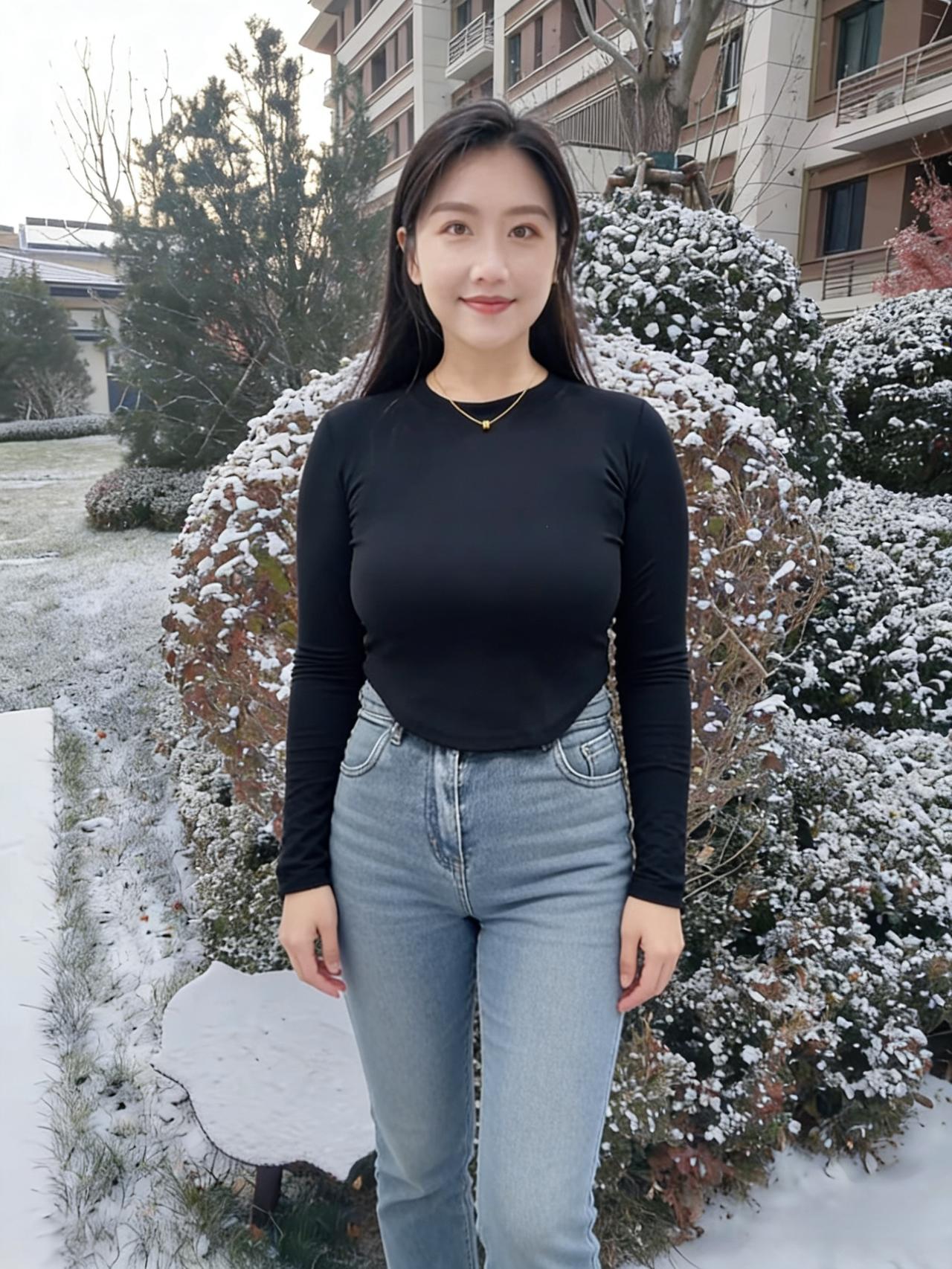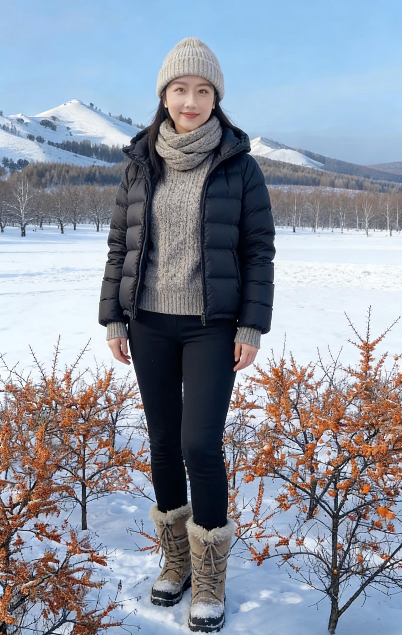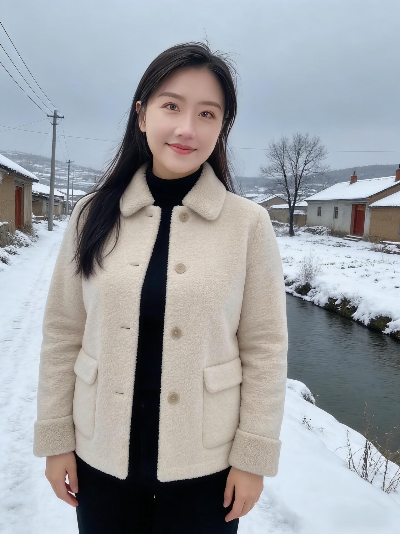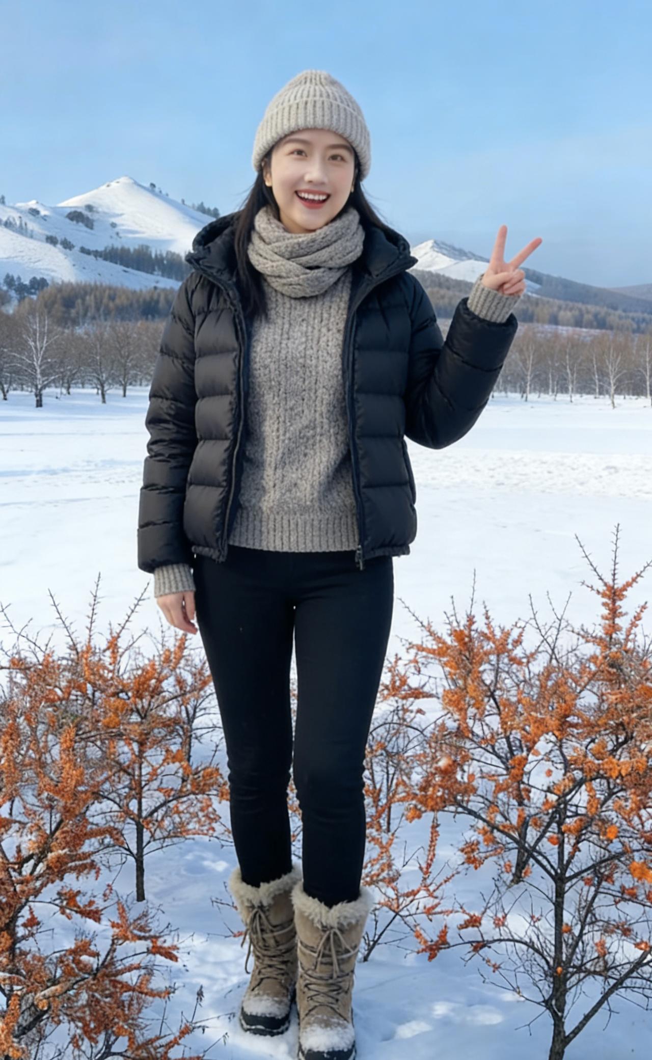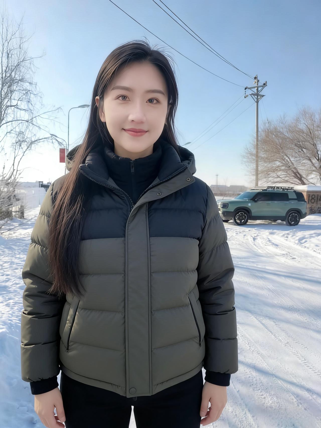 不必借梅的艳,也不必仿松的挺 她站在雪地里,便是冬日的绝色本身 眉眼弯时,寒云便散了几分 唇角扬时,冰雪便融了几分 ~ 黑长发披在肩后,沾着雪的微凉 却衬得肤色如玉,比雪更莹润 你的浅笑,藏着江南的温婉 米色绒衣裹着的,是不熄的暖 你的挥手,带着塞北的爽朗 麂皮长衣的纹路,织着旷野的风 ~ 她穿黑羽绒时,像暗夜里的灯 指尖比出的V字,是破寒的勇气 雪落在她的肩头,不似负重 倒像为她缀上的银饰,添了几分灵动 灰西装沾雪时,又添了几分利落 职场的干练与冬日的柔软,撞出别样风情 ~ 夕阳吻过她的侧脸,把轮廓描得温柔 金辉淌在她的颈间,细链闪着微光 她不说话,只是站着 便让雪的冷,有了人的温度 让冬的寂,有了春的期许 她的眼波里,盛着雪后的晴空 盛着溪流的欢歌,盛着牛群的悠闲 盛着一个人,对冬日最赤诚的热爱 原来美人之美,从不在衣饰的更迭 而在她眼底的光,能把寒冬 都照亮成,最明媚的模样