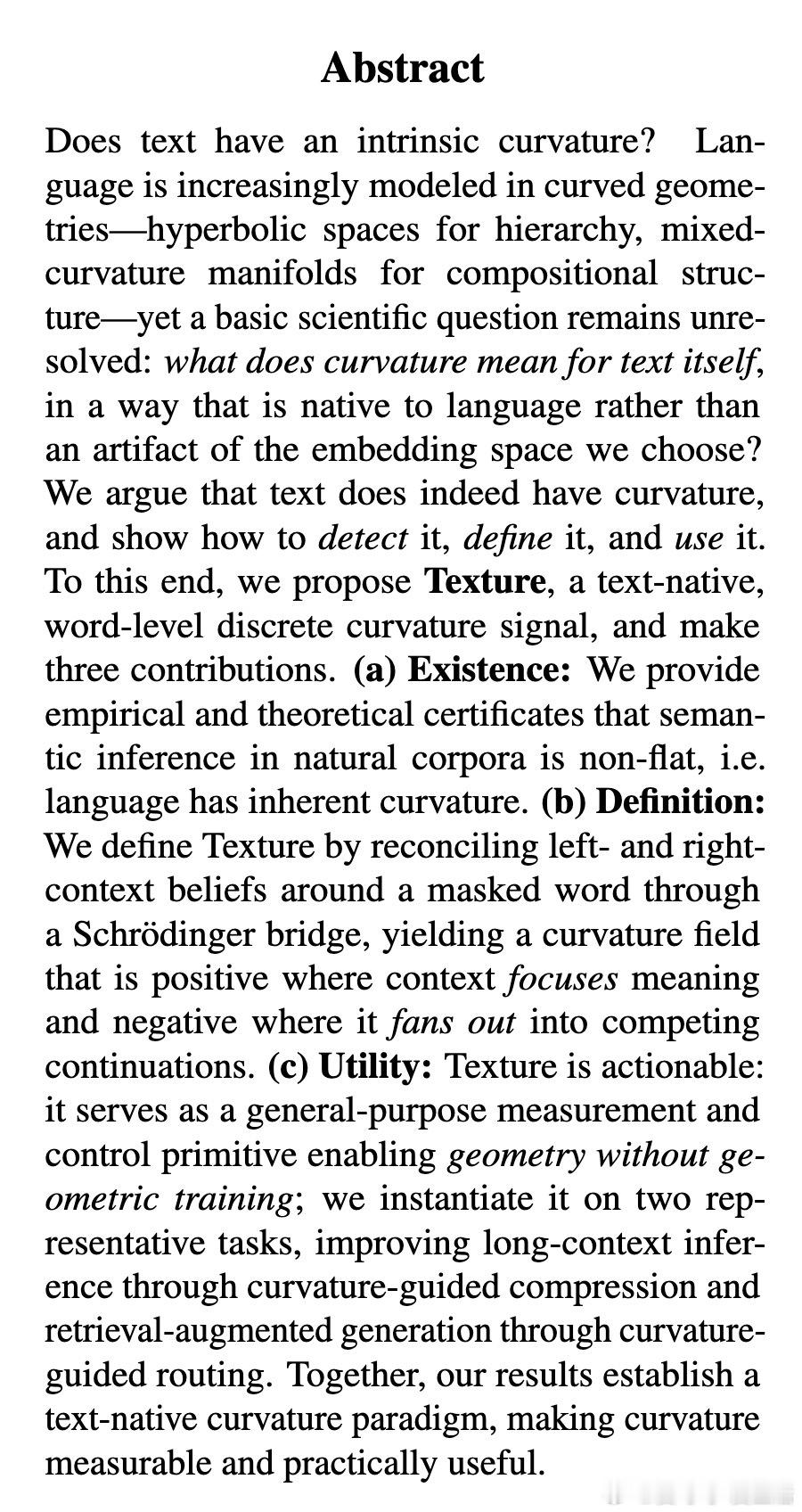 [LG]《Text Has Curvature》K Grover, H Zeng, Y Xia, C Faloutsos, G J. Gordon [CMU & Meta] (2026)