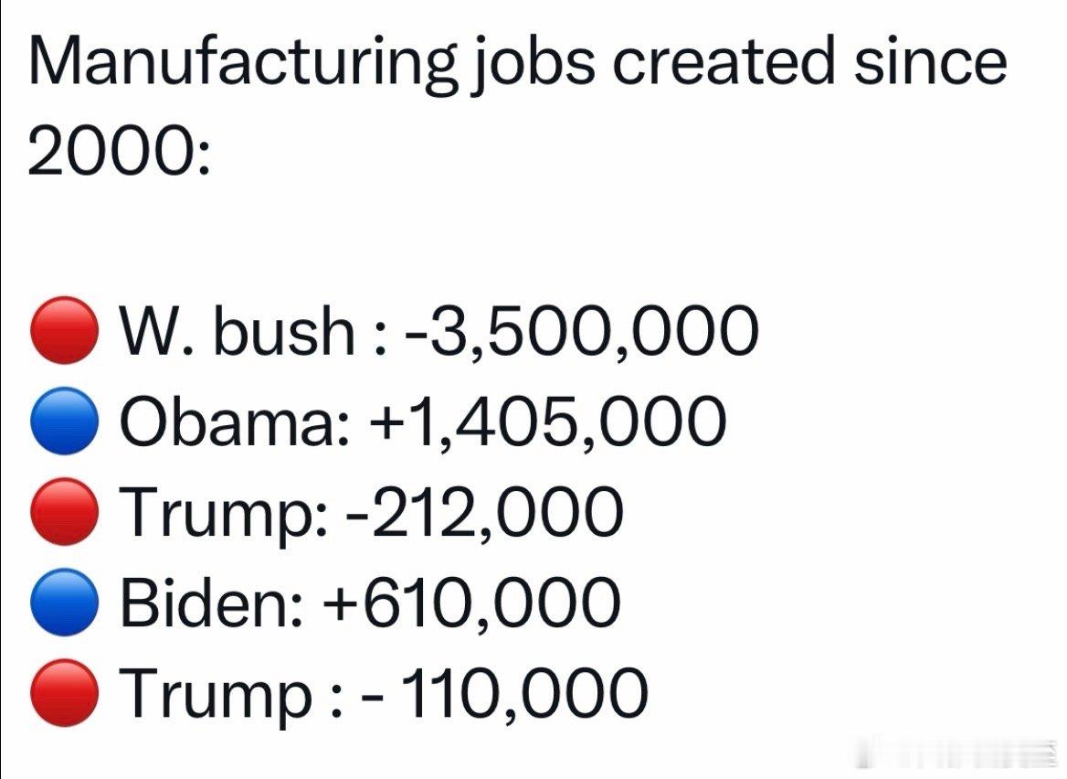 尤其制造业,2021-2024从Trump1.0中复兴,增加了六十多万岗位,Trump2.0第一年形势逆转,减少了十多万工作