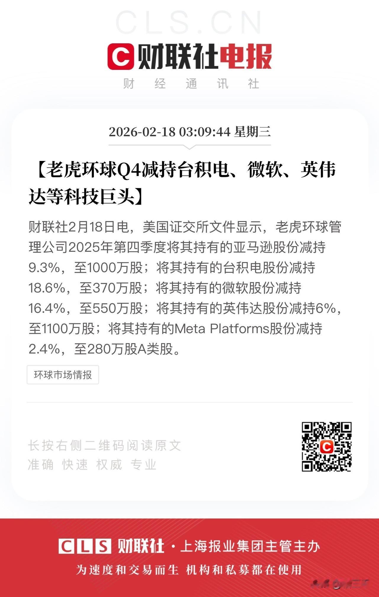 美股这一夜看点全在资本巨头上面! 老虎环球清仓式减持台积电、微软、英伟达。 伯克希尔继续卖苹果股票买雪迪龙, 新一轮石油美元定价, 伯克希尔信心十足呀! 苹果和英伟达继续讲Ai的故事收获上涨, 苹果难产的Siri、卖不动的可穿戴设备挡不住画饼的热情,中国市场iPhone17大卖撑起了半边天。 英伟达和Meta互伸橄榄枝, Meta计划部署百万颗英伟达芯片。 美股科技高标股整体处于风雨飘摇! 羡慕和气人的还是消费医药啊, 且不说创新高的的沃尔玛、麦当劳, 单说爬出坑的默沙东、雅诗兰黛, 依托全球市场就像打不死的小强, 跌的深涨的也疯啊…