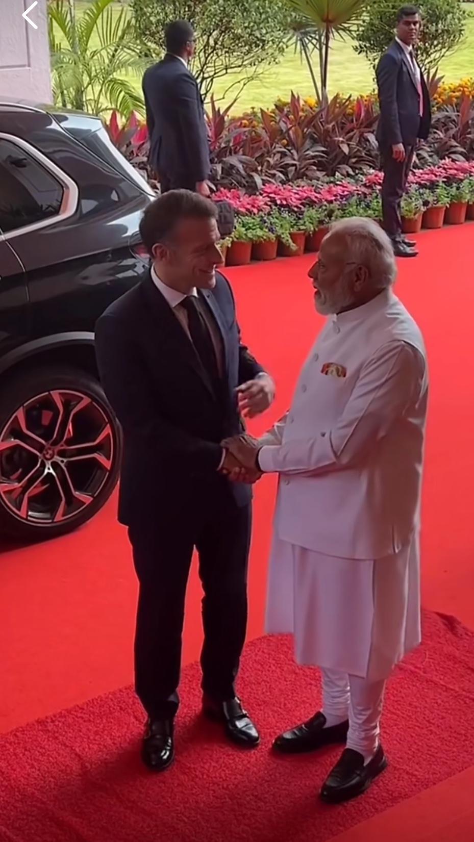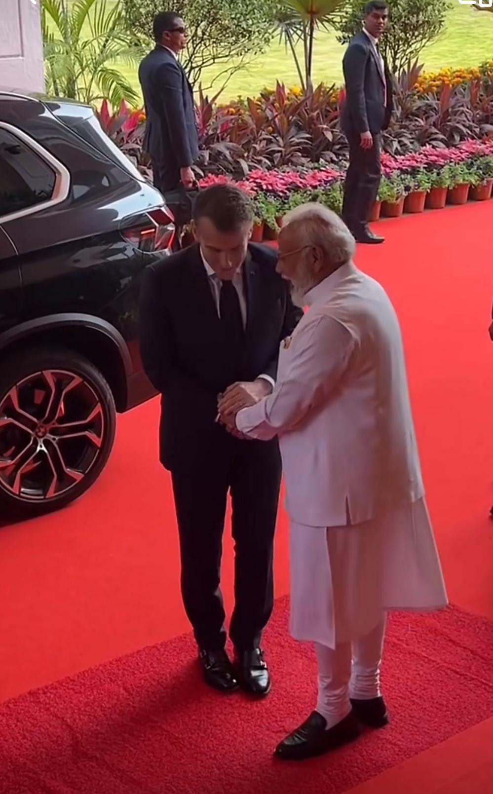 马克龙到访印度! 当地时间2月16日,法国总统马克龙抵达印度,应邀出席新德里人工智能峰会。 在孟买迎接马克龙时,印度总理莫迪早早在门口迎候。随后,两位领导人手挽手并肩而行,拾级而上,这一亲切举动生动展现了双方深厚的私人情谊。 隔壁桌同事:还有紧密的双边关系。