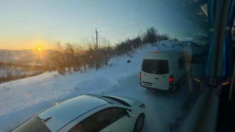 这些游客中就包括了上海的孙女士,她告诉上游新闻记者,自己和妈妈特地利用春节假期到俄罗斯旅游,2月13日下午到达摩尔曼斯克,2月14日早上进入捷里,原计划一日游,当天晚上乘大巴返回摩尔曼斯克。“谁知那天因为大雪实行限时放行,下午5点过后车在公路上再也没有动过,2月14日一整晚都被困大巴上过夜,前后有几十辆大小汽车排队。2月16日上午11点,孙女士一行离开捷里返回摩尔曼斯克,滞留时间超过40小时。“导游和地接全程一直陪着我们。社交媒体上,还有一些中国网友和当地网友在沟通消息、互相鼓励,大家情绪都很稳定。”17日中午,孙女士已和妈妈乘飞机返回莫斯科。