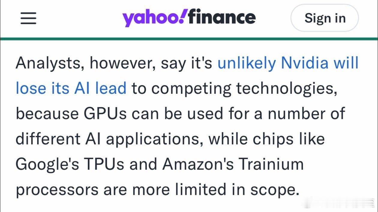 多数分析师认为:Nvidia芯片在AI领域的应用,比Google和Amazon的竞争产品更广泛,领先地位不会被超越