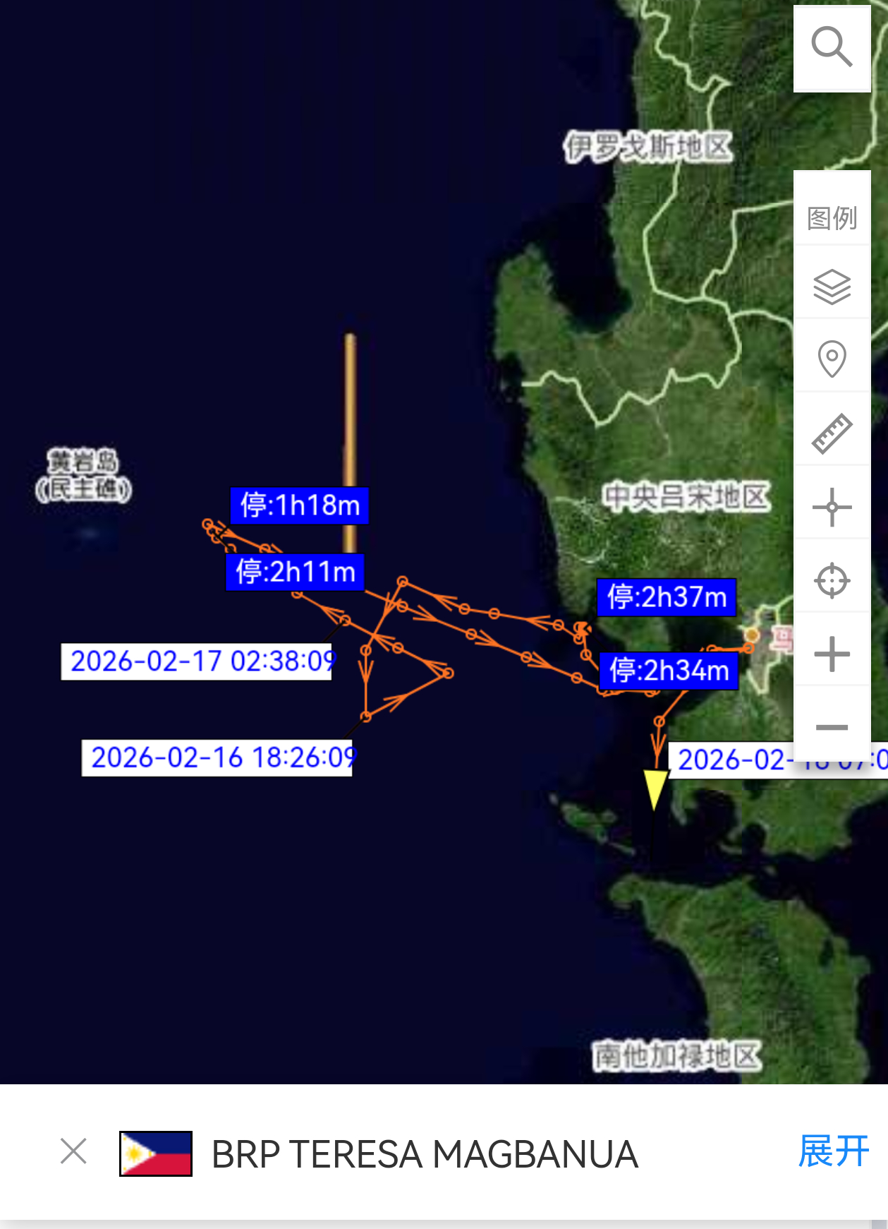 根据特蕾莎·马格巴努亚号巡逻舰的AIS信号,演习区域位于马尼拉湾附近海域,九段线之外。演习结束之后,2月17号,特蕾莎·马格巴努亚号巡逻舰曾试图侵闯黄岩岛,但是从其轨迹来看,最近距离黄岩岛约30海里(图9)。热点观点烽火问鼎计划