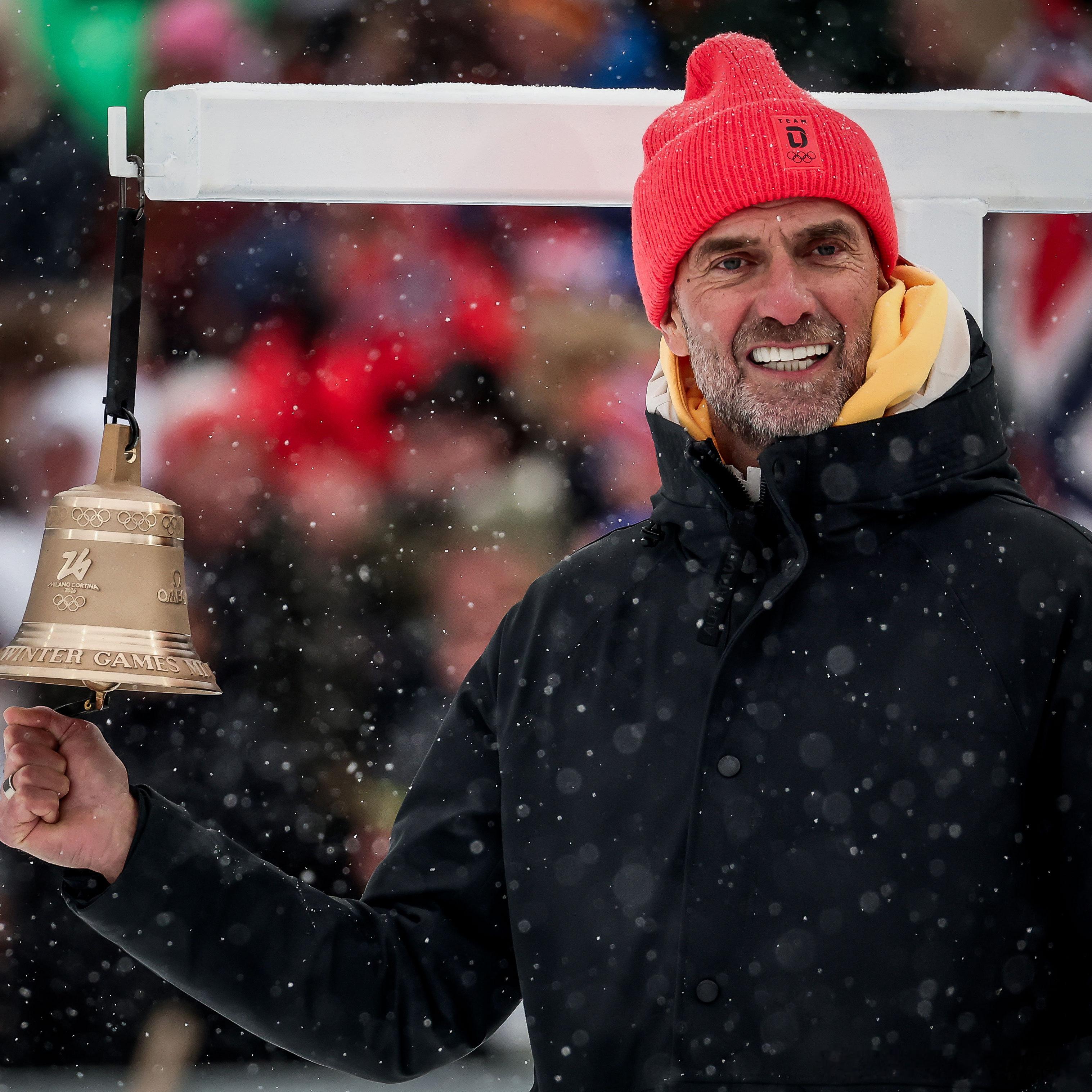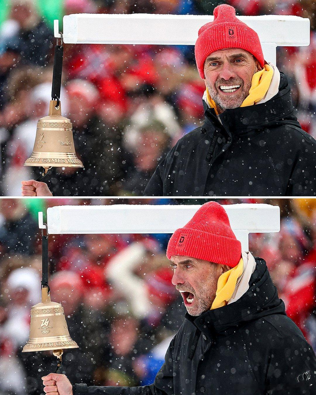 克洛普现在可享受生活了。就在今天,克洛普为冬奥会男子冬季两项接力赛的最后一圈敲钟