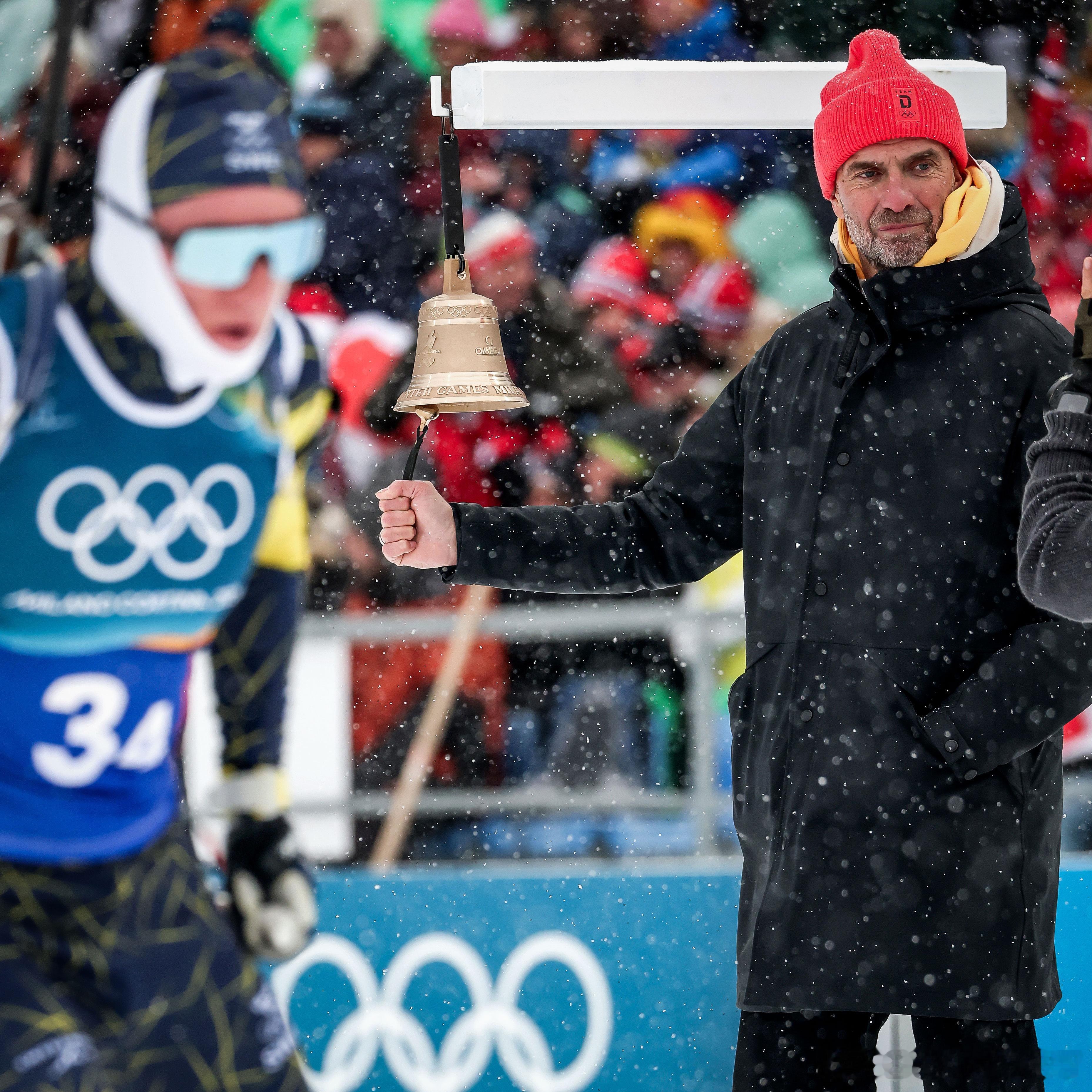 就在今天,克洛普为冬奥会男子冬季两项接力赛的最后一圈敲钟