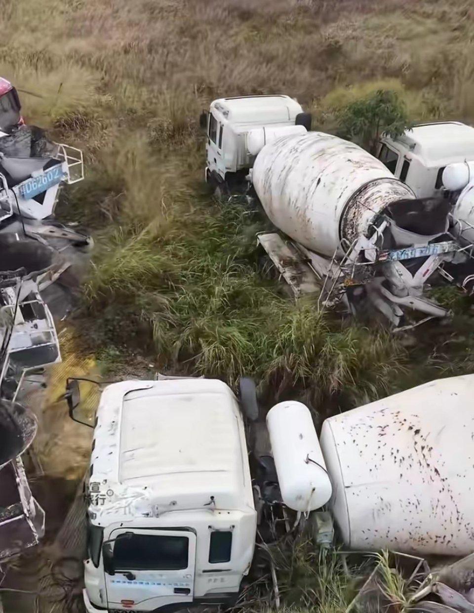 荒郊野地里扔着好些水泥罐车,浑身锈迹斑斑的。想当初房地产火的时候,这种车哪有闲着的份儿,如今却只能一动不动地搁在这儿。一辆罐车怎么说也得几十万,就算不用了,卖掉也行啊,可偏偏就扔在这儿任它生锈,实在搞不懂这是为啥~