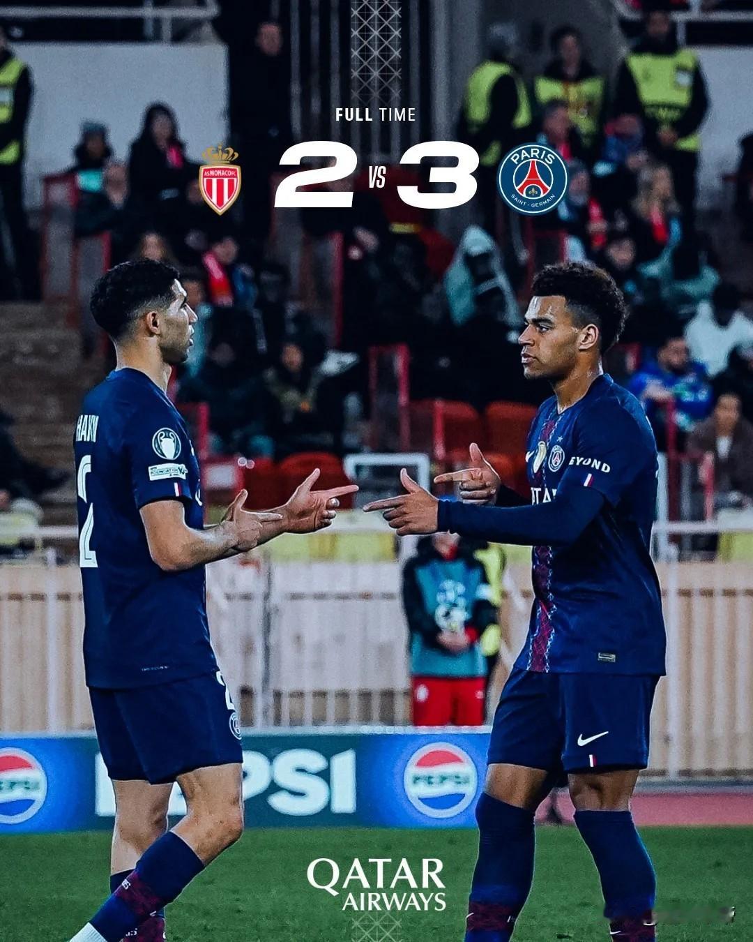 这就是卫冕冠军的底气,大巴黎让2追3逆转摩纳哥! 在今天凌晨进行的欧冠淘汰赛附加赛中,巴黎圣日耳曼和摩纳哥上演了法甲内战对决,上半场巴黎开场不到1分钟就丢球0-1落后,比赛第8分钟再度丢球0-2落后,可谓是天崩开局了。 本以为巴黎要翻车输球了,结果巴黎全队却没有放弃,在罚丢点球的不利情况下依然在上半场连进两球扳平了比分,下半场杜埃神兵天降上演绝杀,最终巴黎3-2逆转摩纳哥上演了“让2追3”的经典翻盘之战。 巴黎不愧为卫冕冠军,即使2球落后一点也不慌还能上演逆转翻盘。21岁的杜埃真的是太强了,替补出战不仅上演梅开二度还间接制造了一球,独造三球的出色表现赛后也毫无悬念的拿到了全场最佳球员,让球迷看到了下一个姆巴佩。