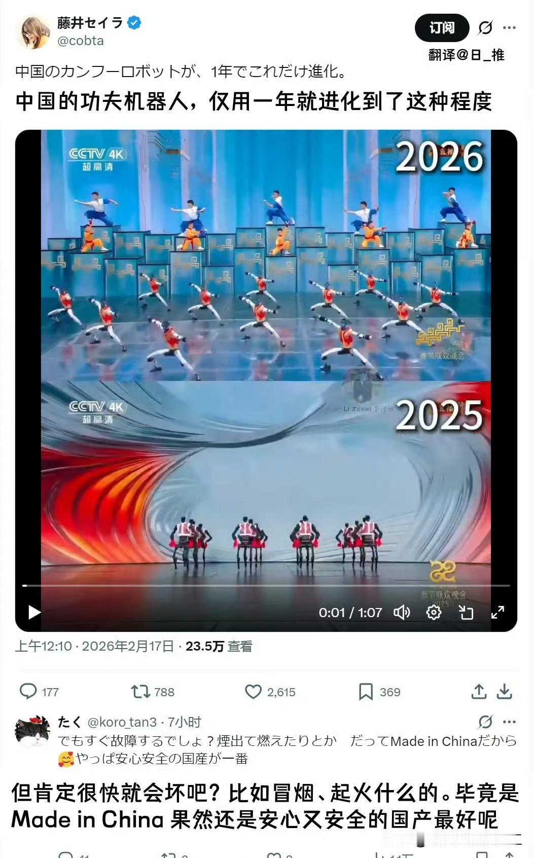 看了春晚今年机器人表演的节目,台湾省网友的评论!