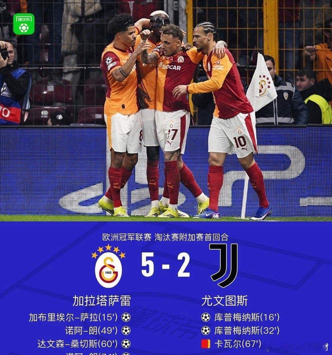 奇耻大辱的尤文图斯2:5溃败于加拉塔萨雷,莫非欧冠附加赛被罚还要怪国米?第一回合的欧冠附加赛莫非尤文图斯又结束了?上半时还赢一颗,下半时突然就崩溃,这就是意甲连续两年连附加赛都过不了的豪门球队?在意甲长期受到裁判照顾,意甲联盟照顾,结果一去欧冠立马现原形跟国米这场一模一样两黄变一红,这也能怪国际米兰咯!说句实话:尤文什么水平自己心里真没有一点逼数?输给土耳其球队这么惨,下回合回到安联体育场照样不能回光返照,耻辱的出局已然铁板钉钉,不干净的球员和俱乐部只能天天怪国米,结果欧冠附加赛还是自己玩死自己。尤文图斯你就慢慢做吧!
