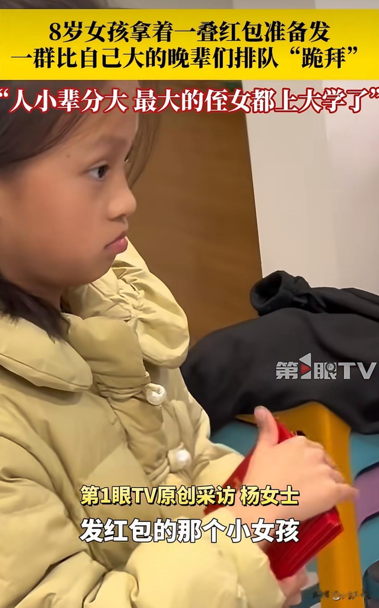 “笑哭!”重庆春节一幕火了:8岁小女孩端坐发红包,排队领的竟是大学生侄女,年龄差拉满,辈分却丝毫不含糊。 本该收红包的年纪,她稳稳当起“小长辈”。晚辈们起初扭捏不好意思,有人带头行礼后,大家依次上前,小小的仪式感,满是年味儿。 此视频曝光后,网友纷纷调侃:“血脉压制,不服不行”“这红包收得又好笑又暖心”。 还有人晒自家同款“小长辈”,直呼:“年味就藏在这些烟火气里“。 在周少看来,这不是玩笑,是家风的温柔传承。孩子从小懂规矩、守礼节,晚辈知尊重、明长幼,没有刻意说教,却在日常里把传统礼仪刻进心里。 客观的说,家风从不是生硬的道理,而是饭桌上的谦让、拜年时的恭敬、代代相传的分寸感。不用追求完美,也不必刻意刻板,把尊重与温暖藏在小事里,孩子自然懂敬畏、知感恩。 总而言之,这朴素的教养,比多少说教都管用,也是过年最珍贵的礼物,这种家风值得称赞!#寻美三湘#