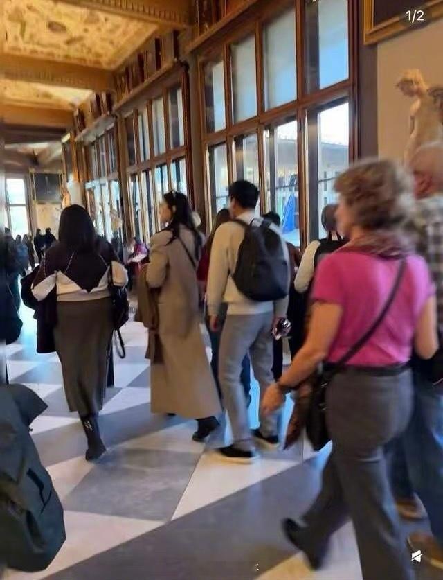 张天爱跟素人合影,胯真的好宽,大宅院似的
